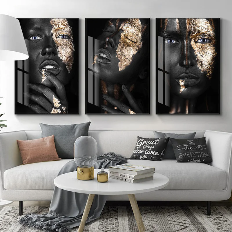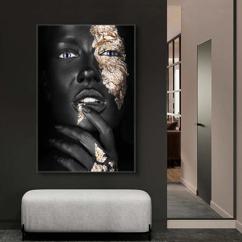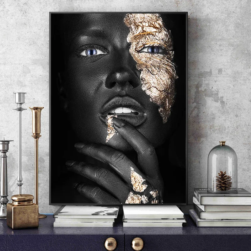 Золотая модная сексуальная черная темная кожа Женская фотография плакаты и принты Настенная картина для гостиной