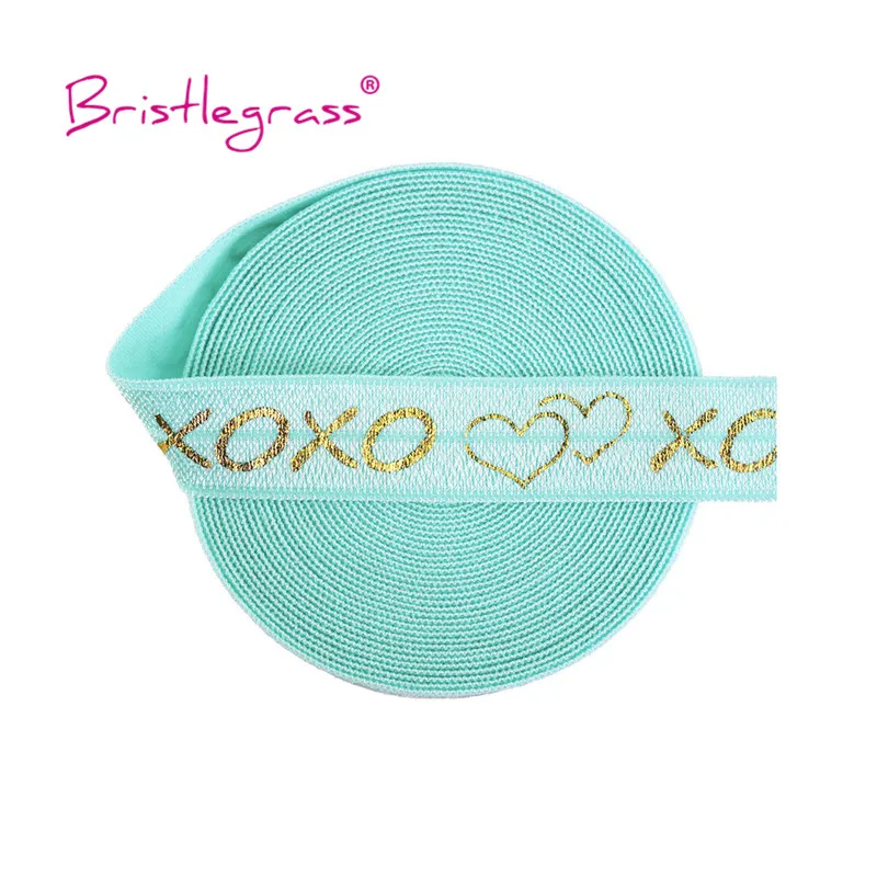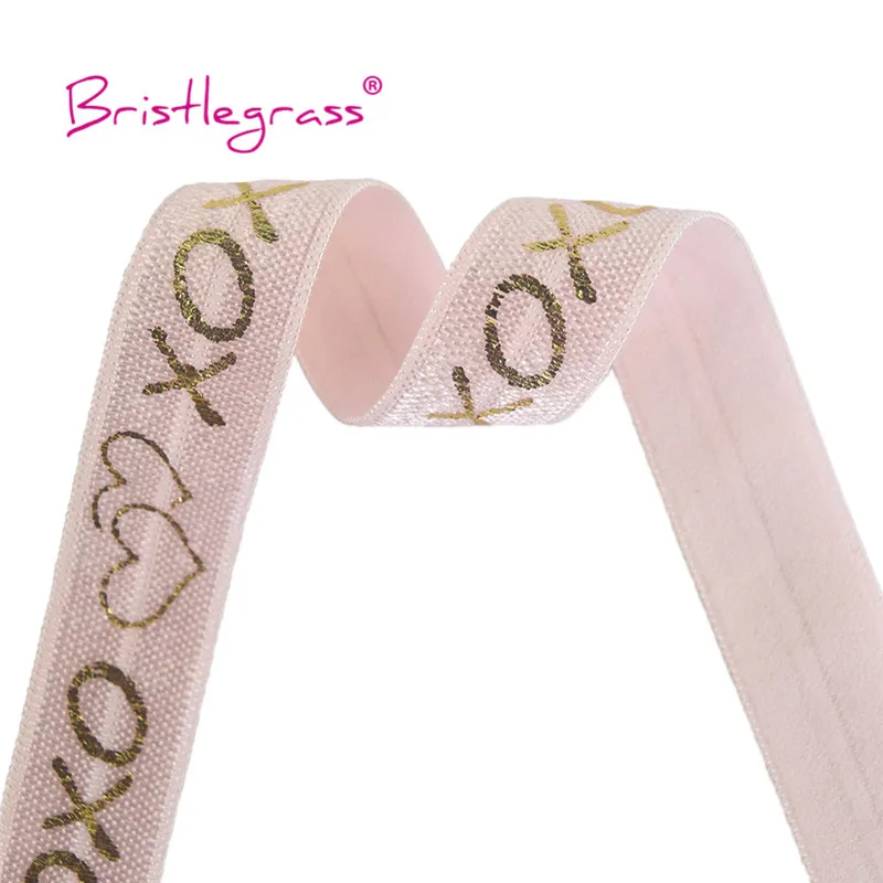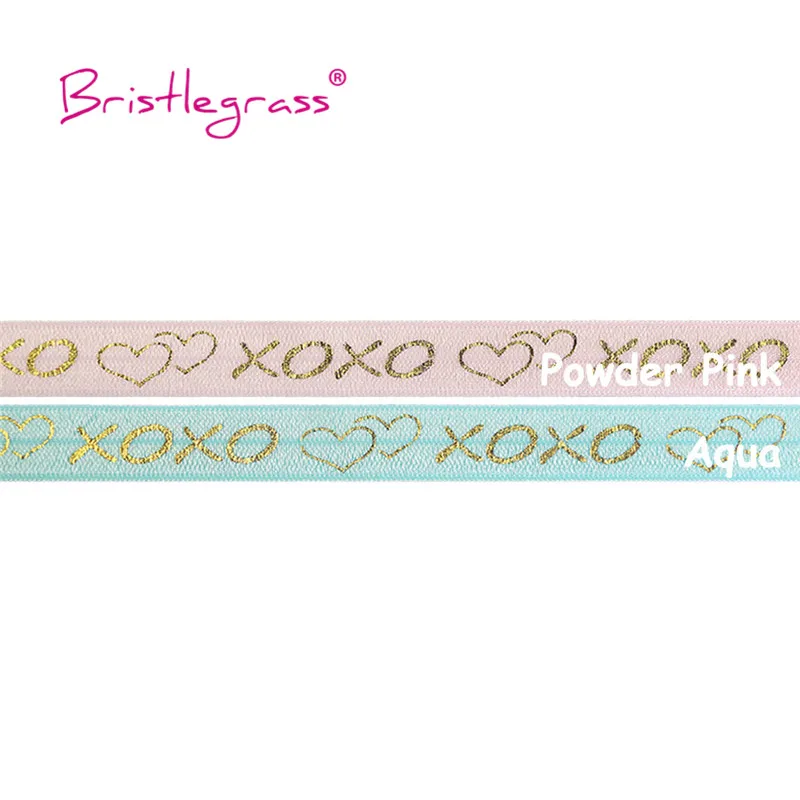BRISTLEGRASS 5 ярдов 5/8 "15 мм Золотая XOXO Любовь Сердце фольга печать раскладной эластичный враг повязка из спандекса запястье волос галстук платье швейная отделка