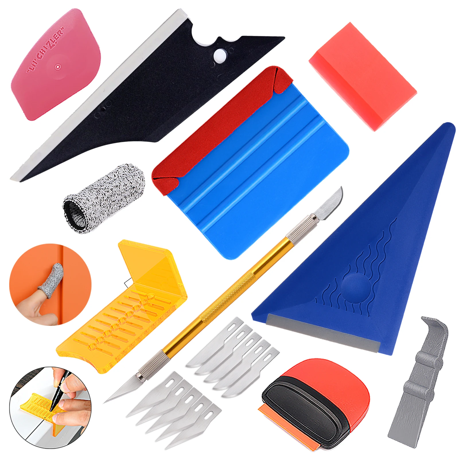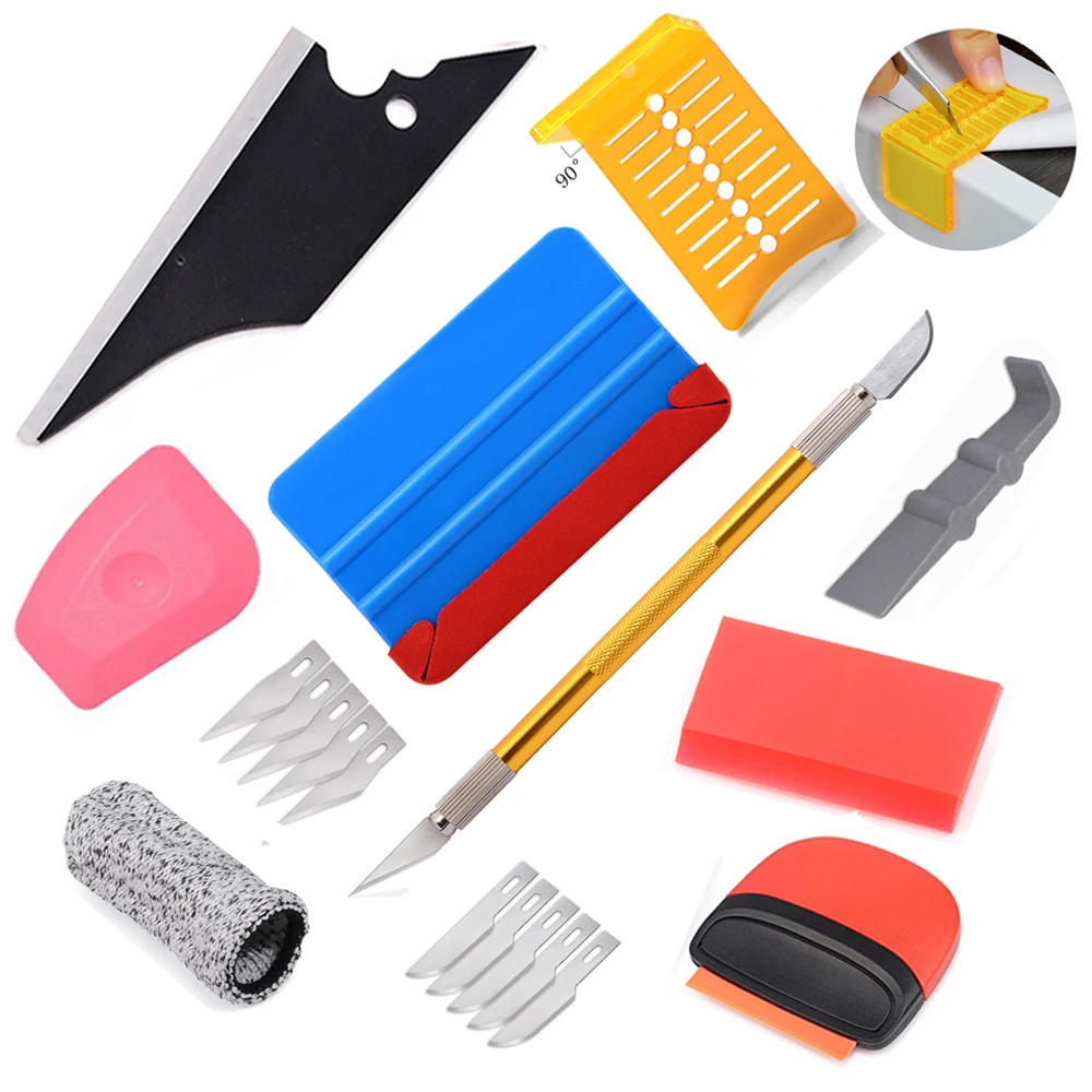 Автомобильная пленка FOSHIO, комплект с ракелем для обмотки окон из углеродного волокна, тонировочный нож, резиновый инструмент для удаления наклейка скребка, аксессуары