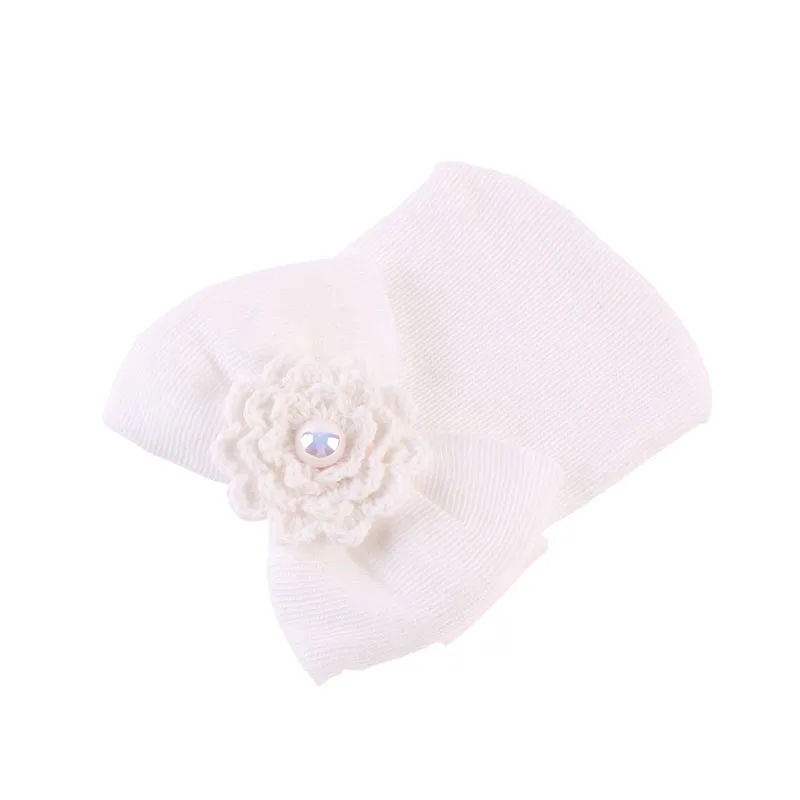 Шапочка для новорожденных девочек, с бантом и цветком, мягкая, E06F
