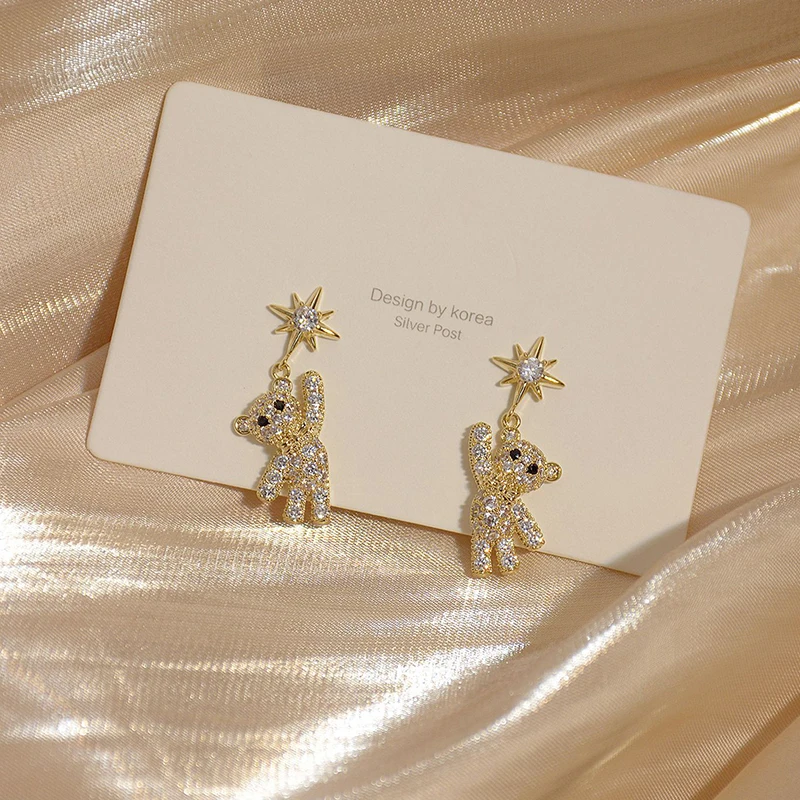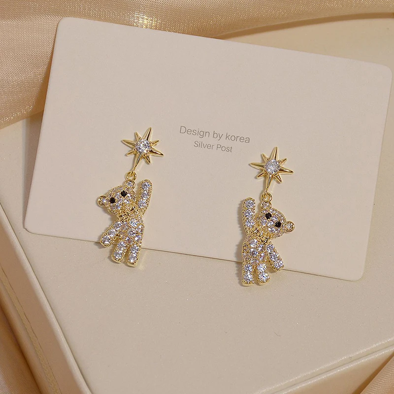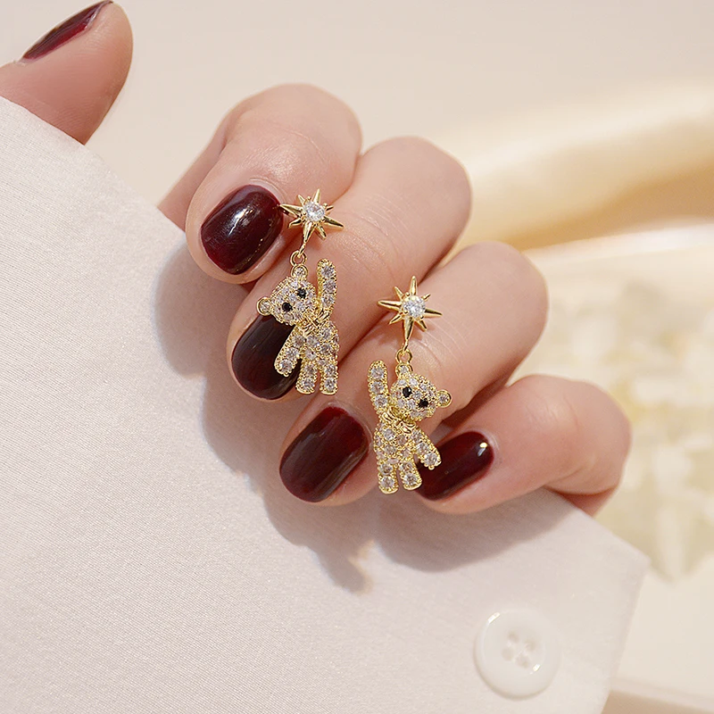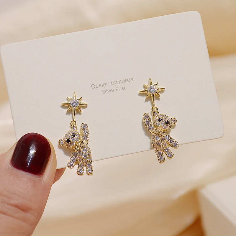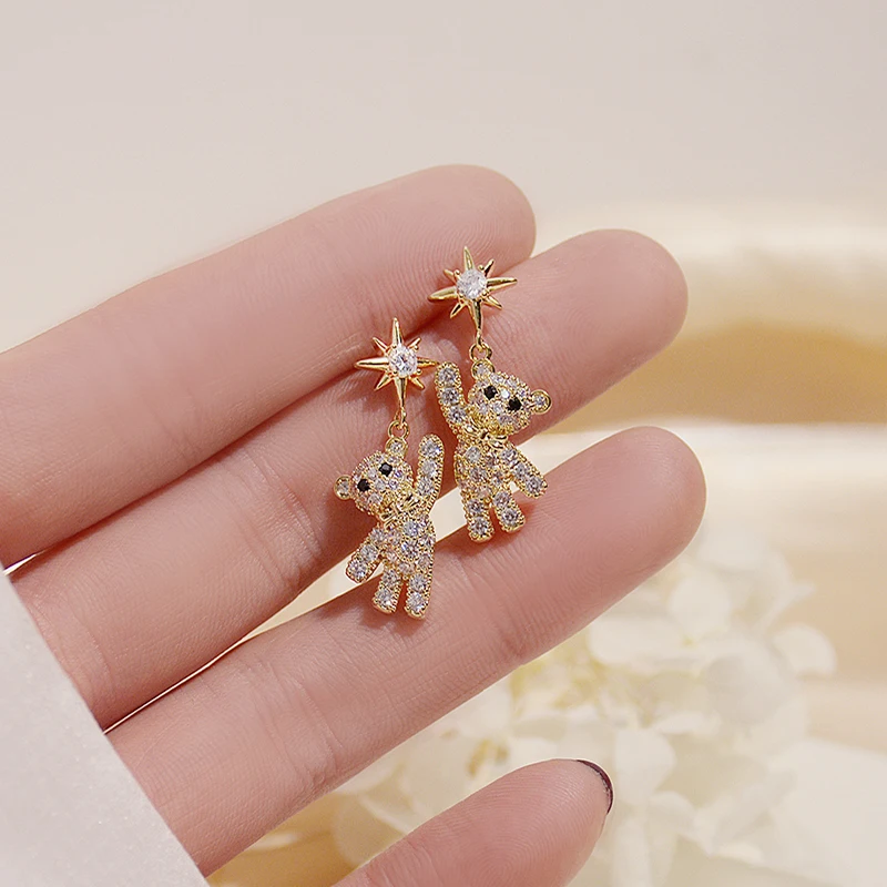 Новое поступление, полностью алмазные Сияющие серьги с милым медведем для женщин, очаровательные серьги-подвески с цирконием и кубическим цирконием, ювелирные изделия, аксессуары для подвесок