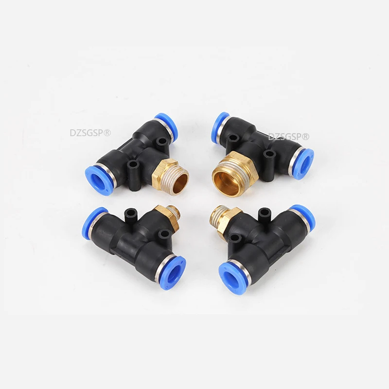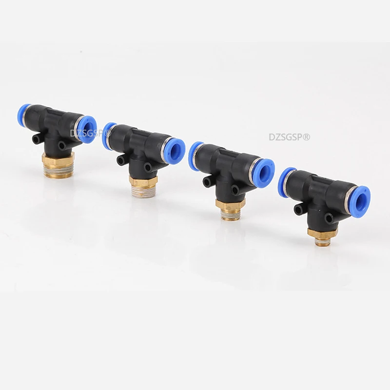 Воздушный соединитель фитинга Т-образной формы тройник 6 мм 8 мм 10 мм 12 мм 4 мм шланг трубы до 18 "14" M5 38 "12" BSPT мужской поток пневматический муфта