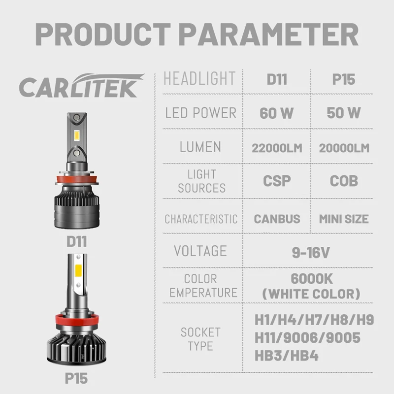 CARLITEK H1 H4 H7 H11 светодиодные лампы для фар Мини Размер 9005 9006 H8 H9 Автомобильные фары автомобильные аксессуары HB3 HB4 фары Turbo универсальные