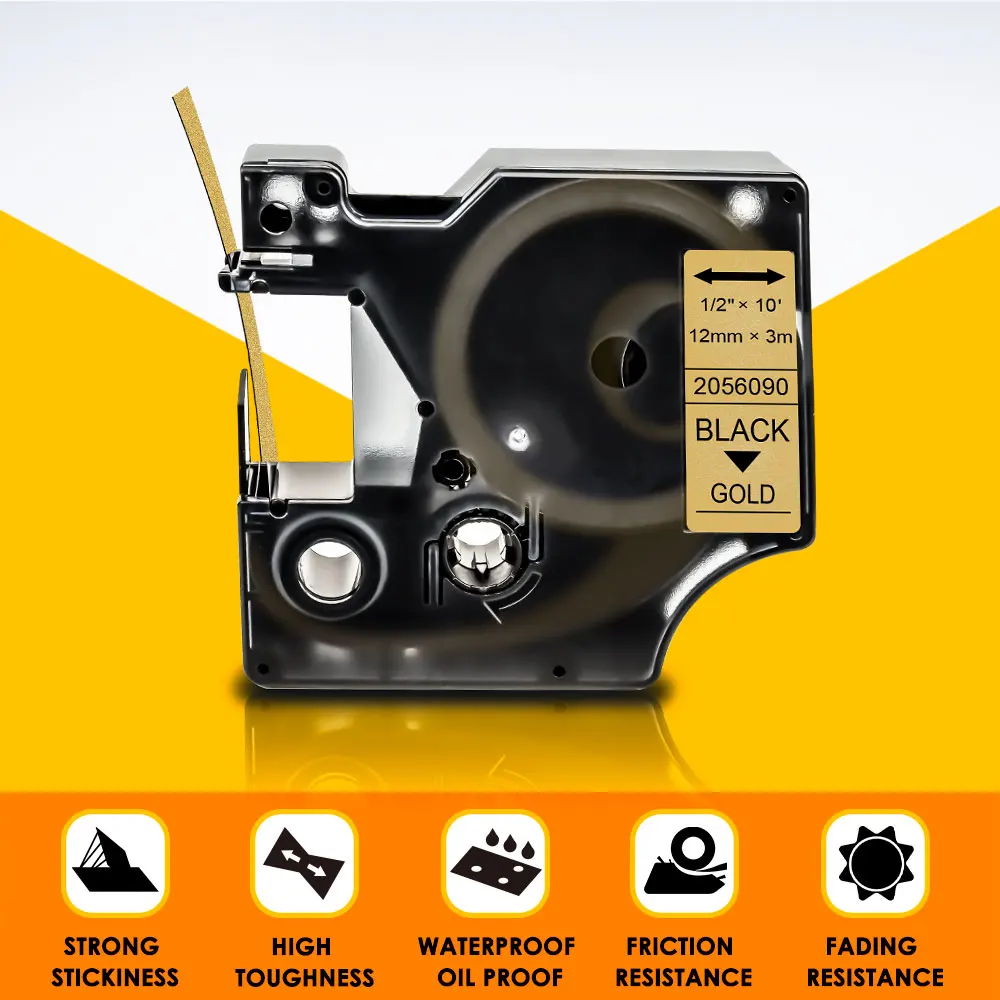 Блестящая лента совместимый с Dymo D1, 12 мм, черная на золоте, блестящая лента 2056090 для принтера Dymo PNP LM160 LM280