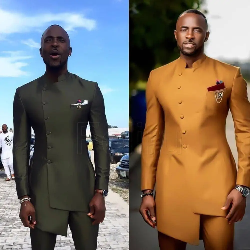Африканский атласный Свадебный костюм, Мужская одежда, приталенный костюм для шафера, деловая одежда, Официальный смокинг, костюм на заказ, мужской кафтан из 2 предметов