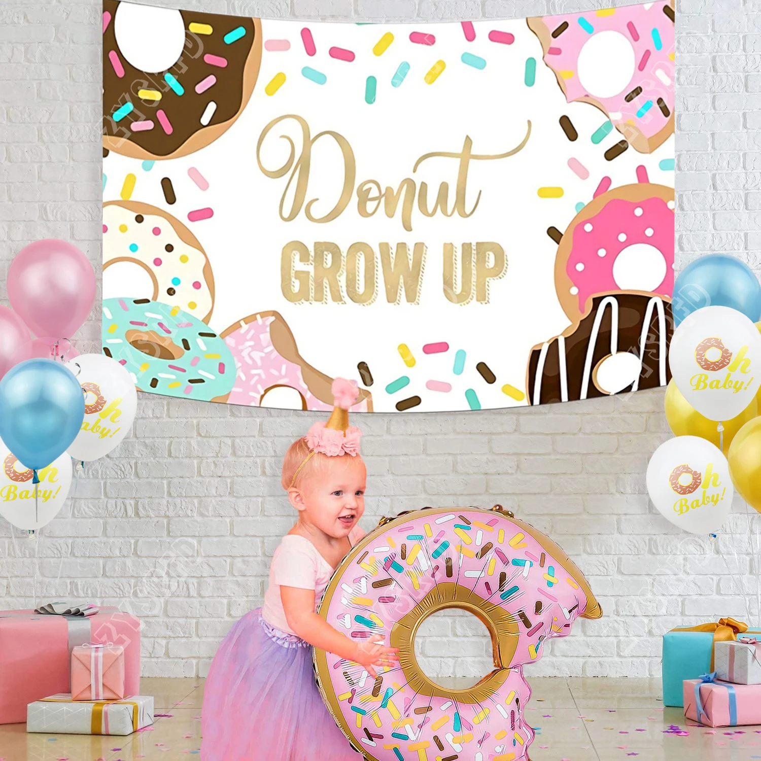 Милая пончик тематическая вечеринка на день рождения украшение пончик для взросления тканевый гобелен Oh Baby Donut Balloon Baby Shower Boy Girl 75D