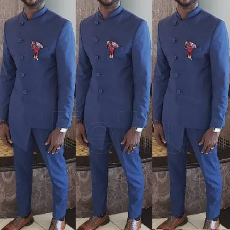 Африканский Свадебный Мужской длинный костюм, приталенный мужской костюм, деловой костюм, смокинг на заказ, мужской костюм-Кафтан из 2 предметов, темно-синее пальто + штаны