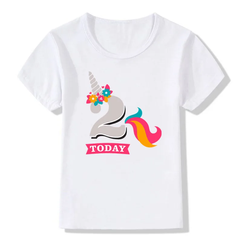 Футболка для девочек на день рождения с изображением единорога и цифр 1-9, 1,2,4,6,8,10,12 лет