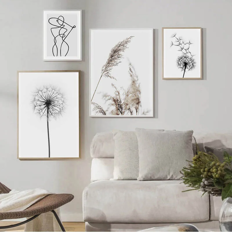 Богемный стиль, цветочный плакат на холсте с изображением травы, пр...