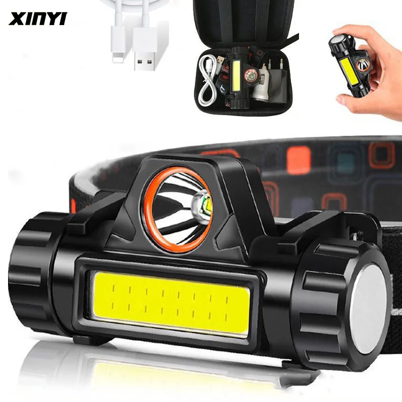 Светодиодный головной светильник USB Перезаряжаемые мощный XPE + COB светодиодный налобный фонарь IPX6 Водонепроницаемый головной светильник с 1200 мАч встроенный Батарея