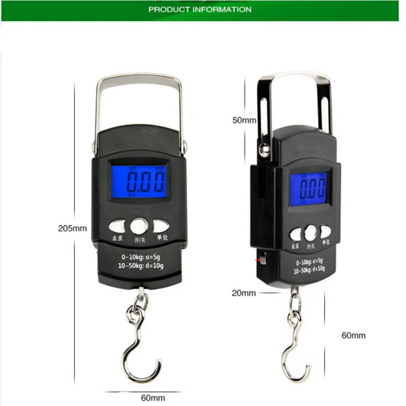 Портативные цифровые весы 50 кг, мини-весы, цифровые рыболовные чемоданы, дорожные электронные весы, весовые весы, черный крючок