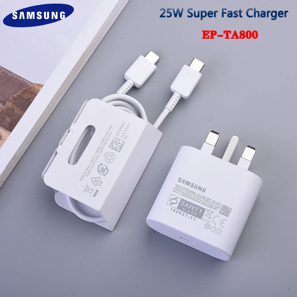 Особенности: -Samsung Galaxy Note 10 Plus S20 Plus супер быстрое зарядное устройство -- Максимальная выходная мощность: 25 Вт -Штепсельная вилка британского стандарта -100 см кабель USB Type-C-Type-C -Черный/белый -Модель зарядного устройства: EP-TA800