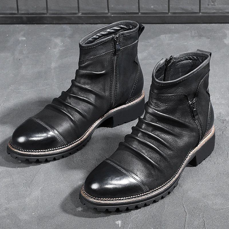 Ботинки Челси мужские кожаные, на молнии, с высоким берцем