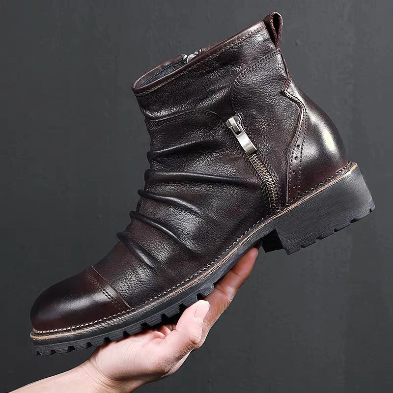 Ботинки мужские кожаные в винтажном стиле, ковбойские ботильоны, мотоцикл, повседневная обувь, черные, коричневые, большой размер 48