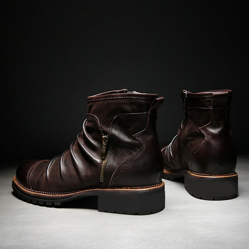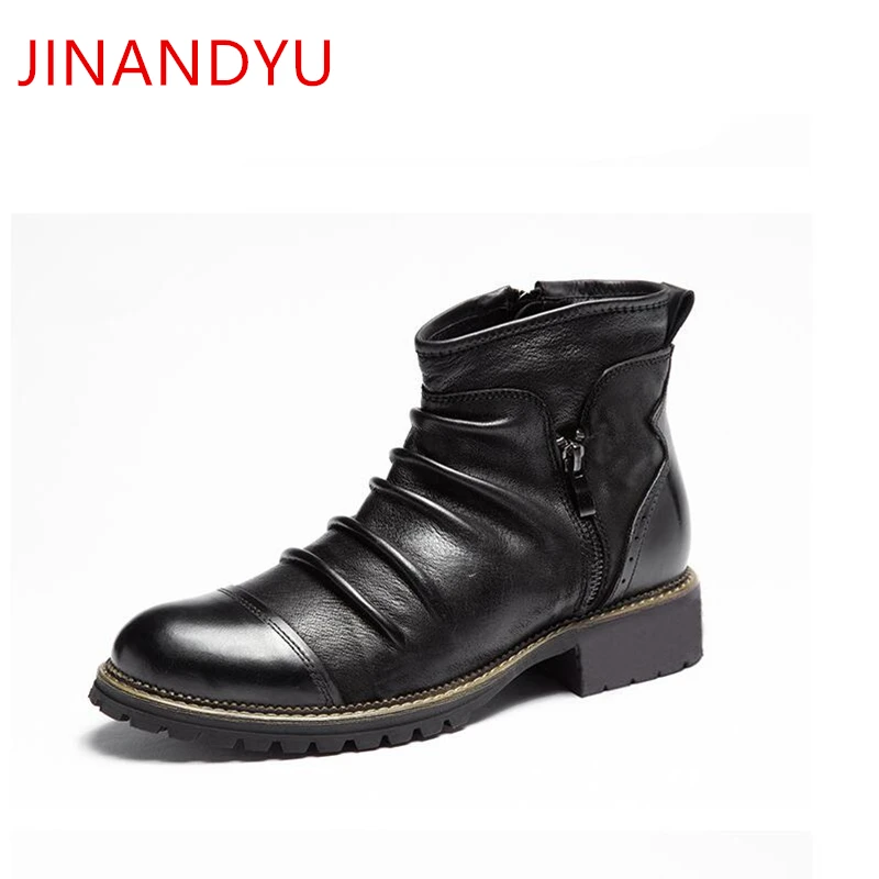 Ботильоны мужские кожаные на молнии, Повседневные Дышащие, мотоцикл...