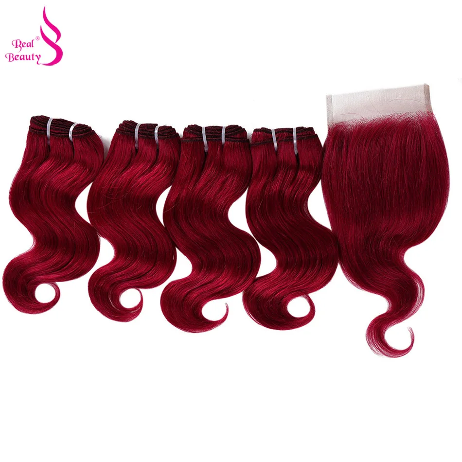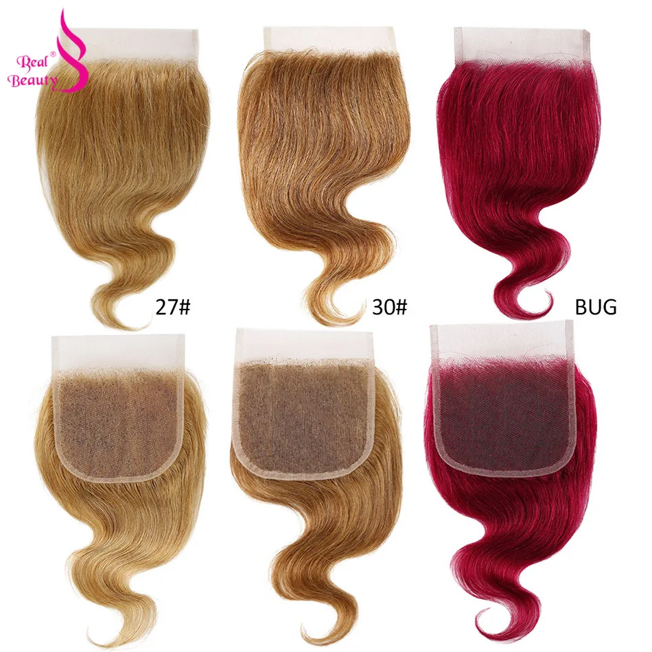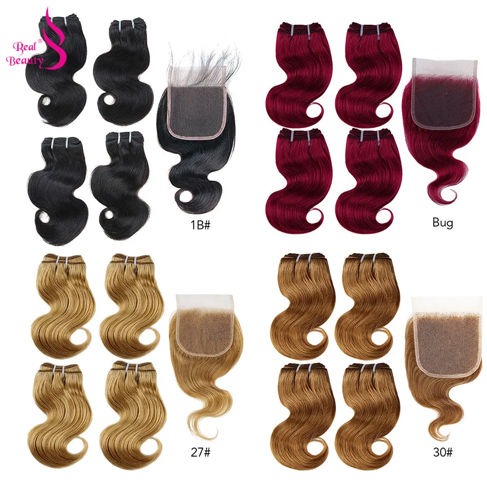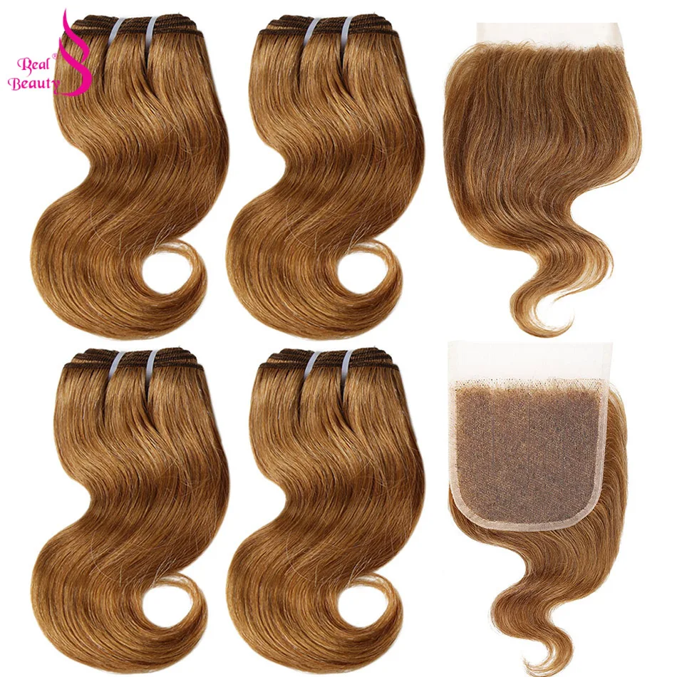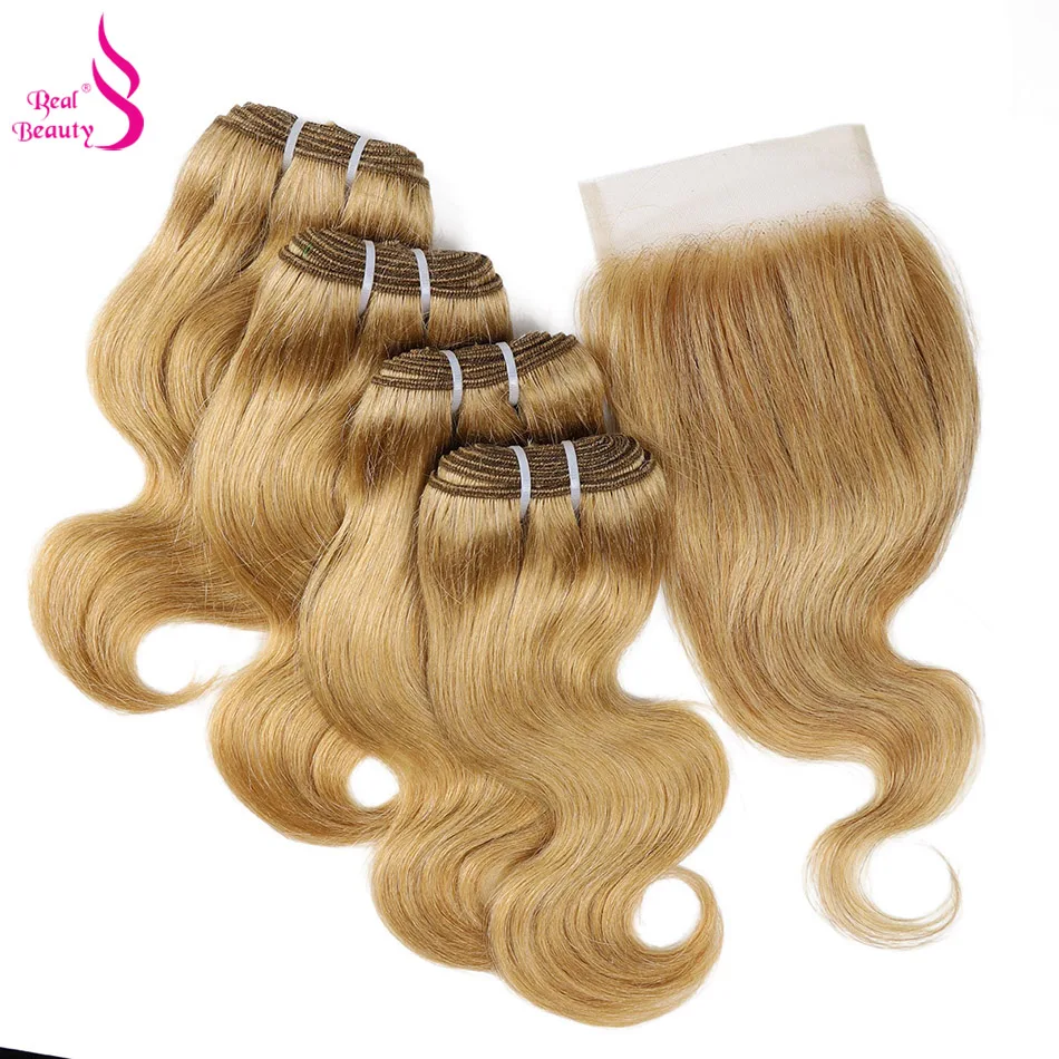 Настоящие красивые 4 пряди с закрытием 50 гшт. перуанские волнистые человеческие волосы с кружевной застежкой медовый блонд 99j волнистые волосы Remy