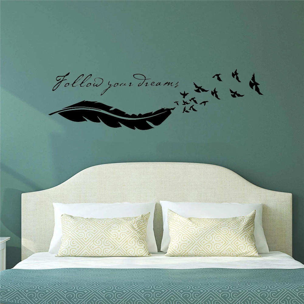 Виниловая наклейка на стену Follow your dreams с перьями и птицами для детской комнаты, гостиной, домашнего декора, ph227