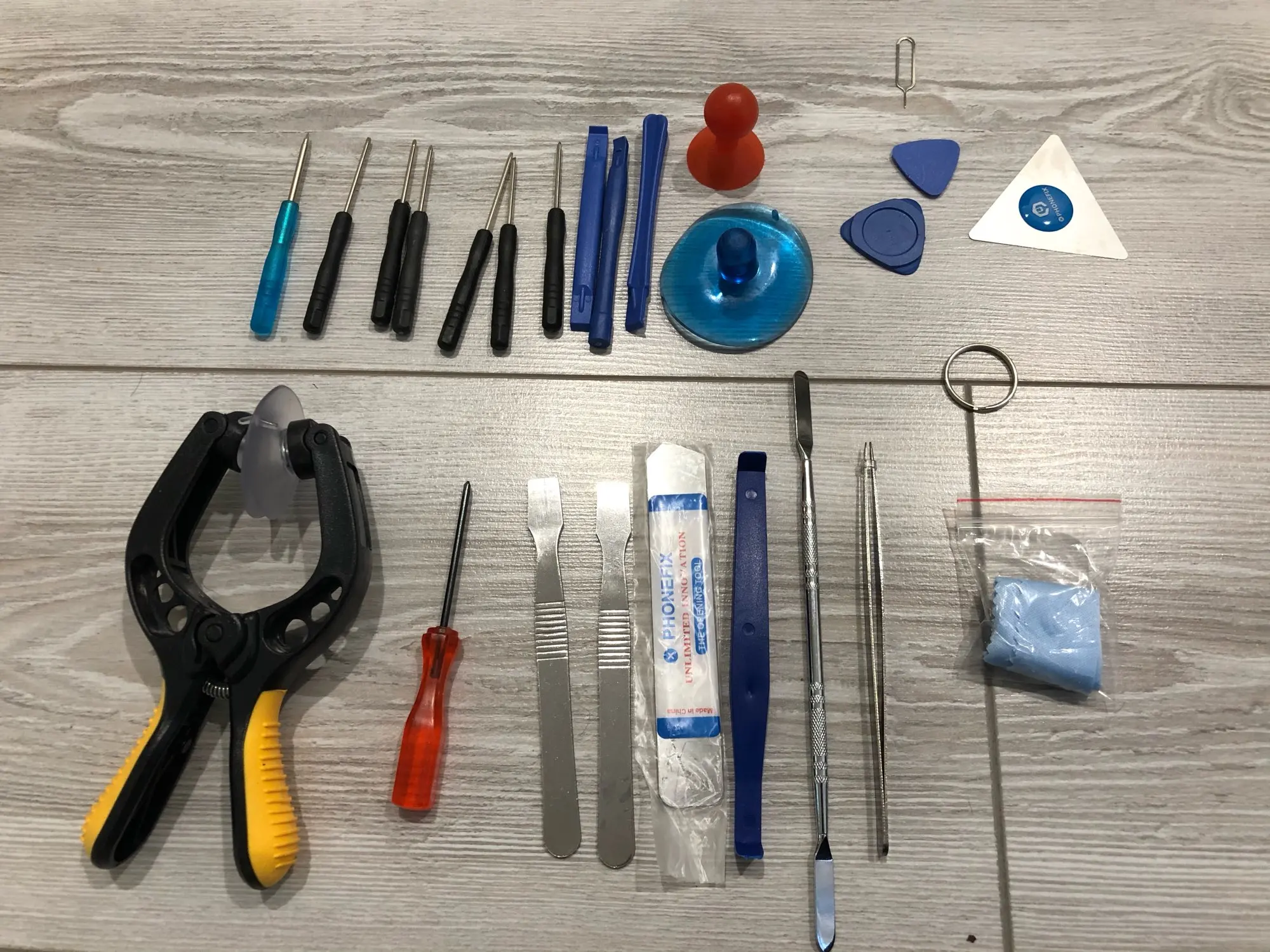 Инструменты низкого качества .. Не покупайте их. Я не могу открыть винт (iPhone X) и присоска тоже не работает. Только инструмент для подделки кажется работоспособным.