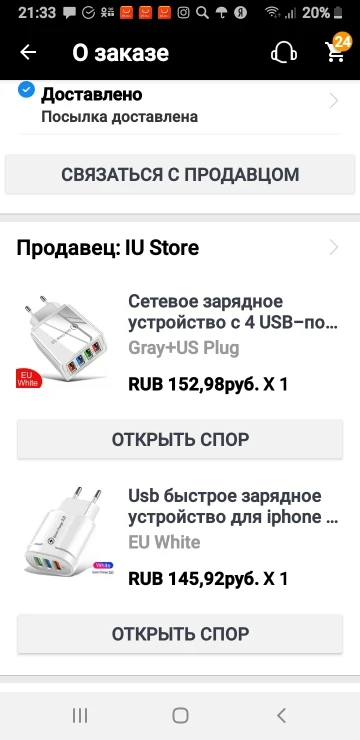 Заказал 09.01.2021г., получил 28.01.2021г. (Удмуртия Сарапул). Быстрая доставка, как по мне. Посылка отслеживалась. Значек быстрой зарядки на экране телефона не появилась (Xiaomi Redmi Note 8). В зарядке все usb разъемы работают. Скрин прилагаю (один скрин от моей зарядки, другой от этой). С продавцом не общался. Отправил быстро.