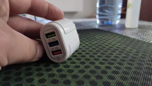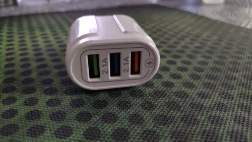 Зарядное сделано красиво и на ощупь из качественного пластика. Все три порта выдают при зарядке около 2,1 ампера. Подключал разные смартфоны через различные кабели зарядки, но цифры остаются в тех же параметрах. То есть быстрой зарядки у меня не происходит( возможно виной мои кабели. Они не тянут большой ток). При работе идёт приличный нагрев зарядника, но не критичный.