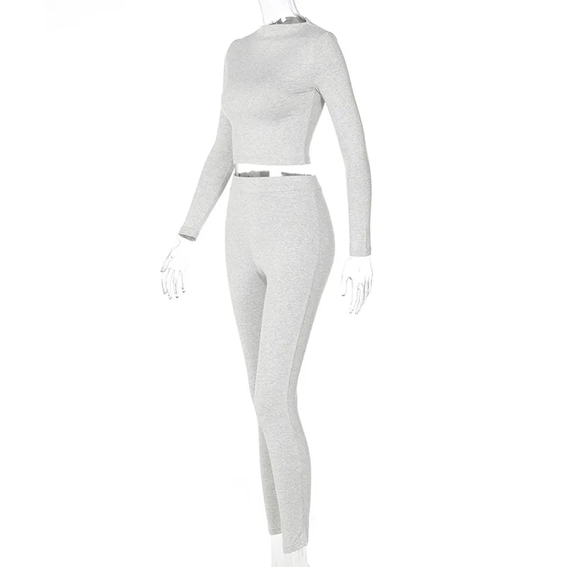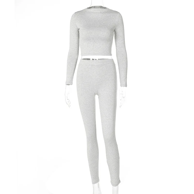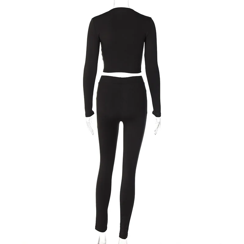 Женская спортивная одежда с длинным рукавом, облегающая, однотонная, эластичный кроп-топ, 2 шт., штаны комплект одежды