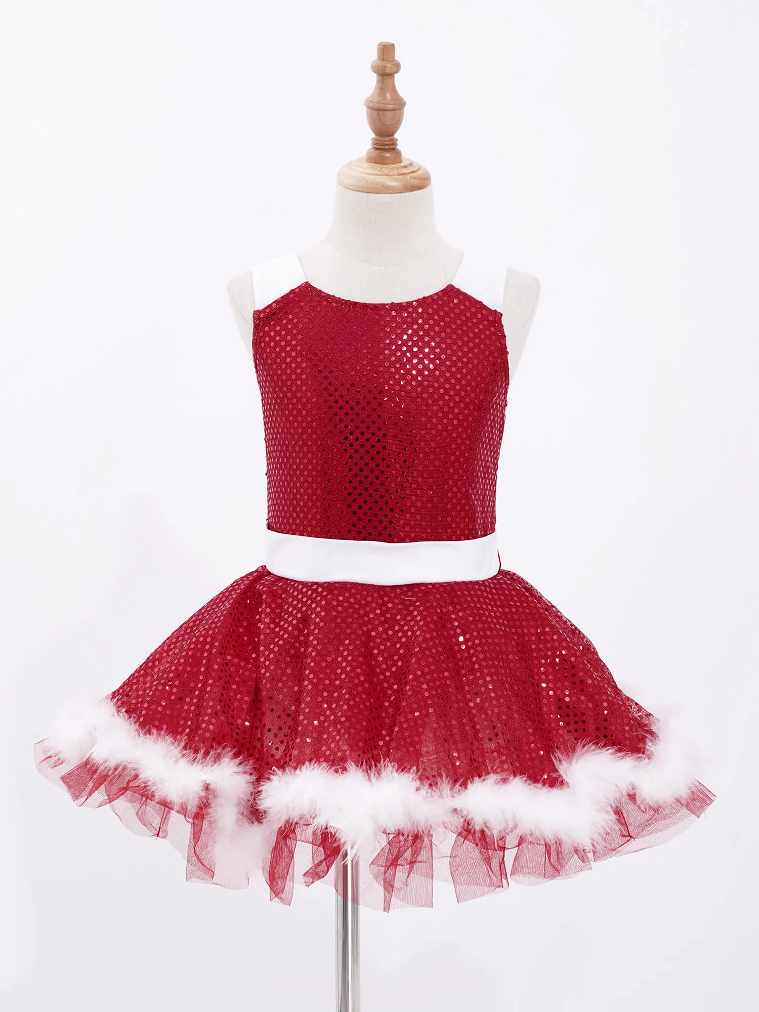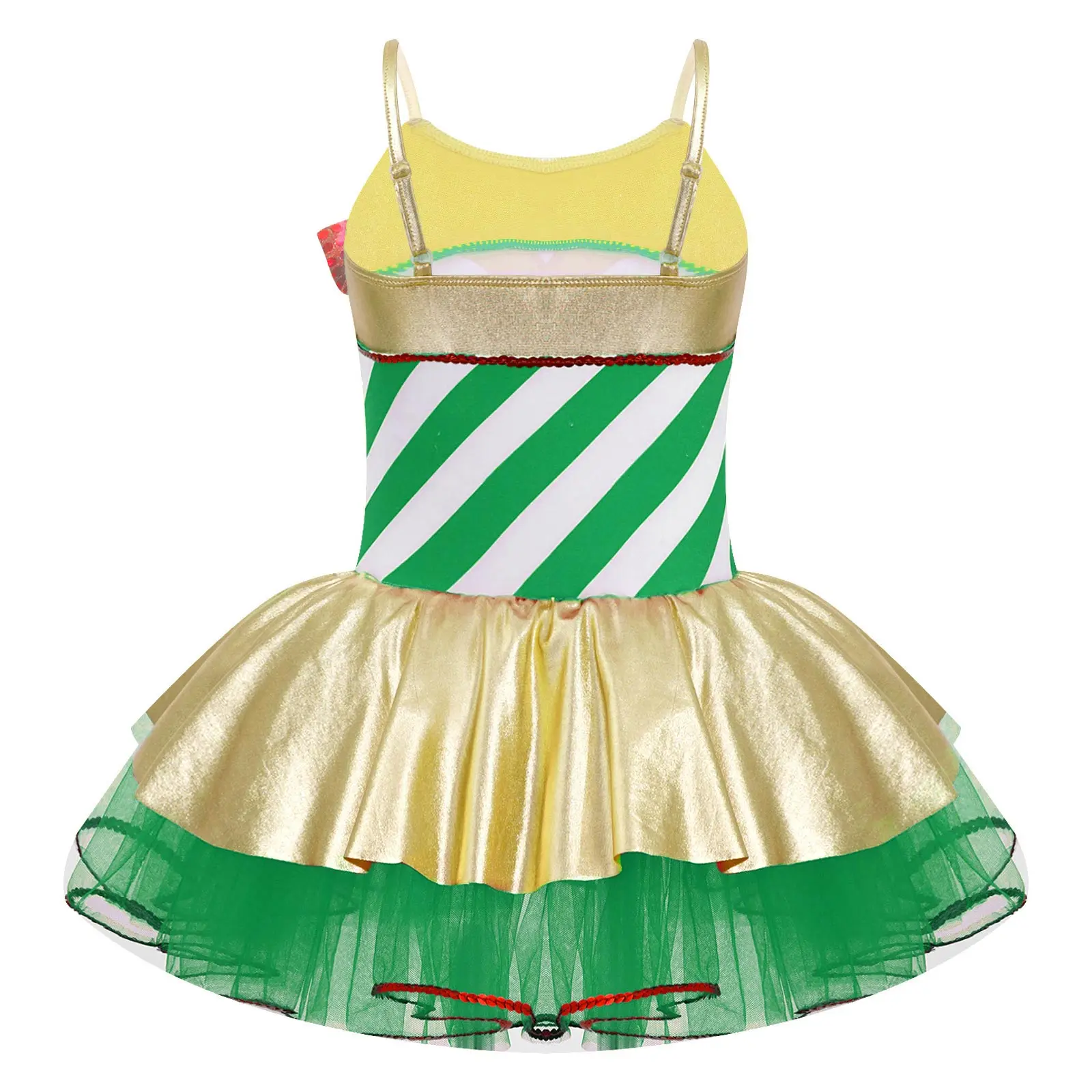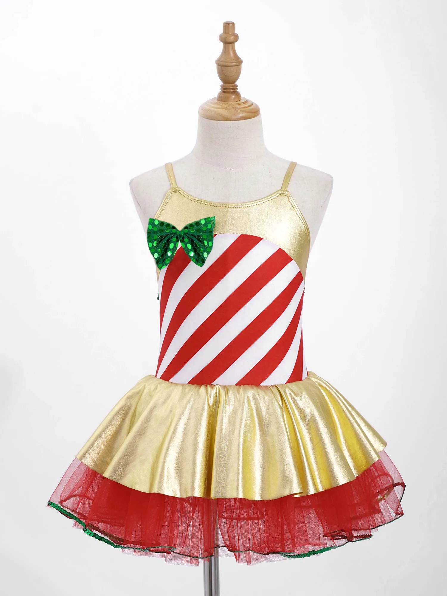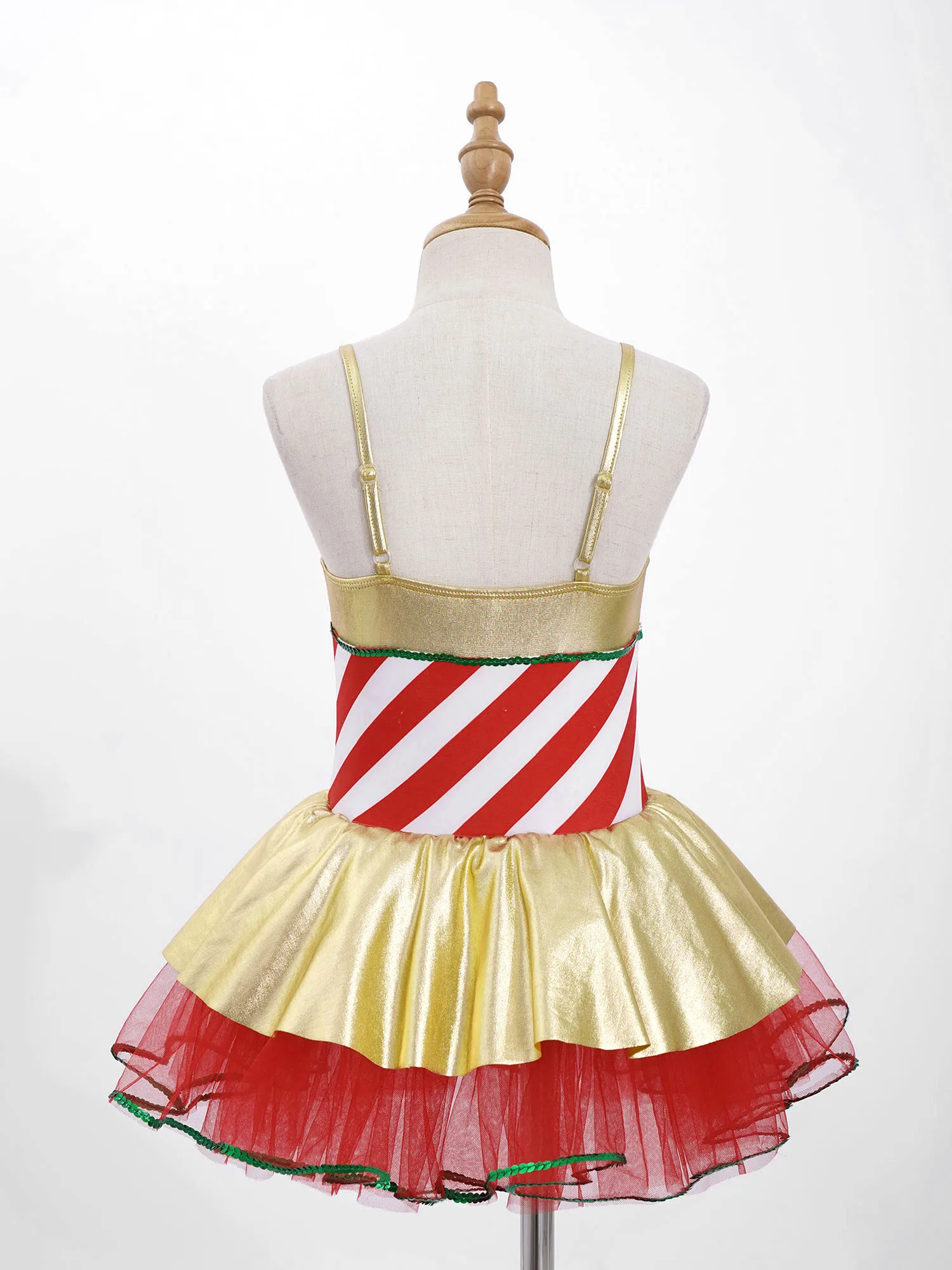 Детский Рождественский костюм без рукавов, блестящая полосатая танцевальная одежда с блестками, детская балетная пачка для девочек, трико, платье для фигурного катания на коньках