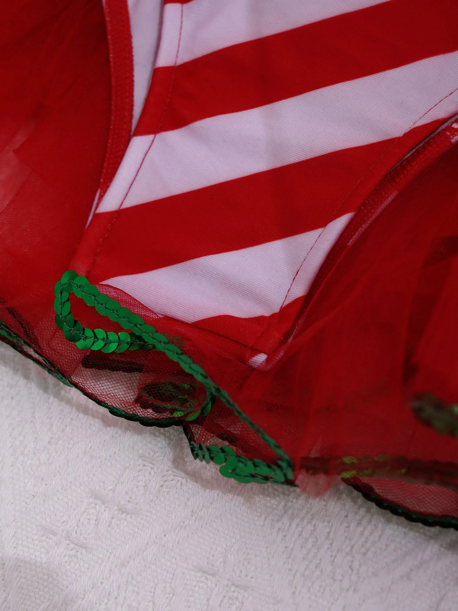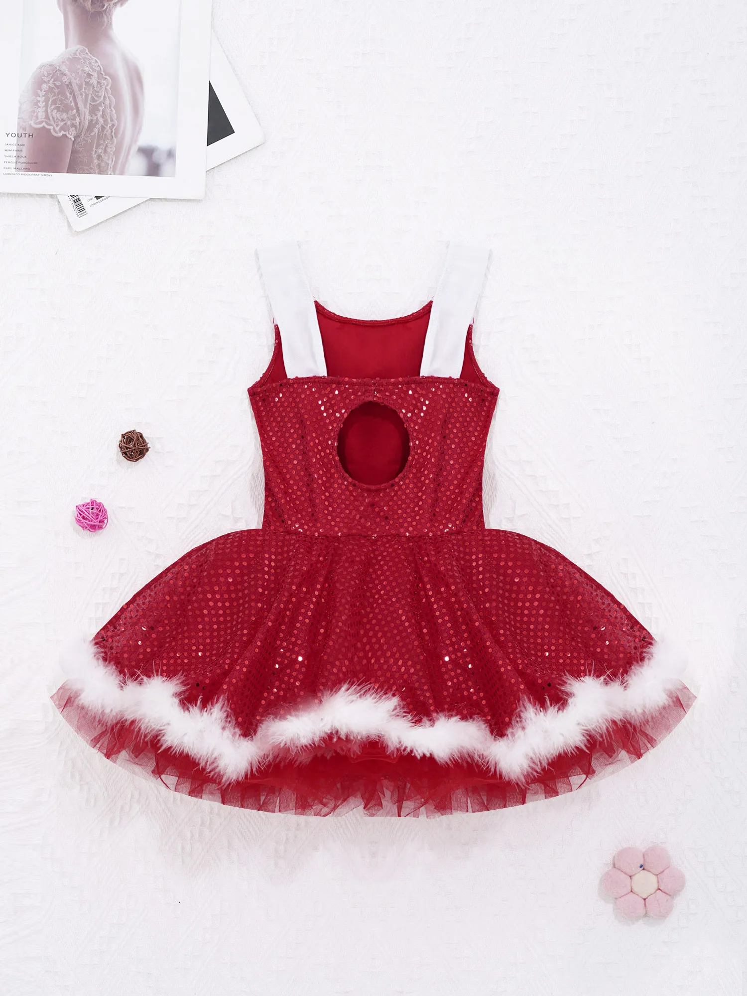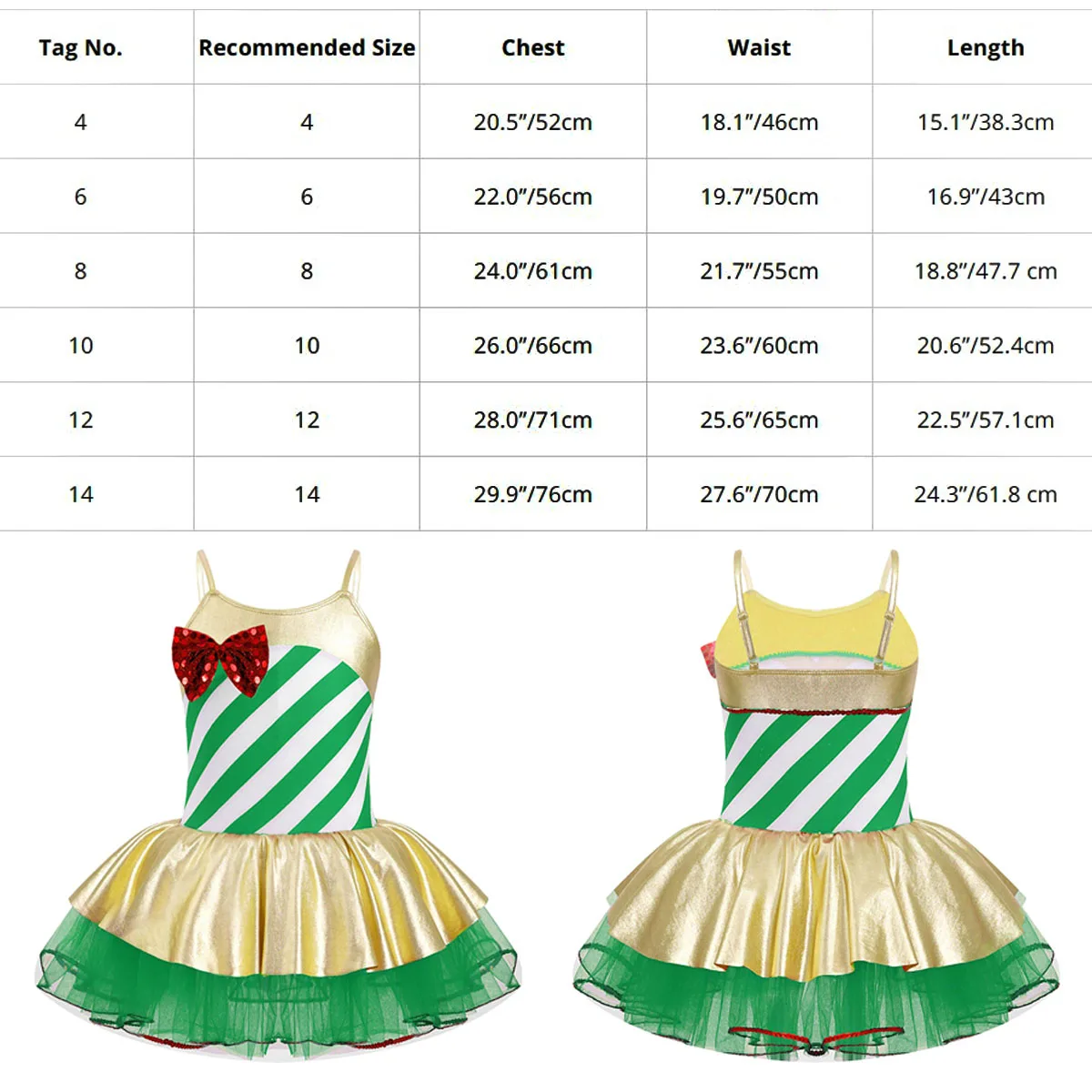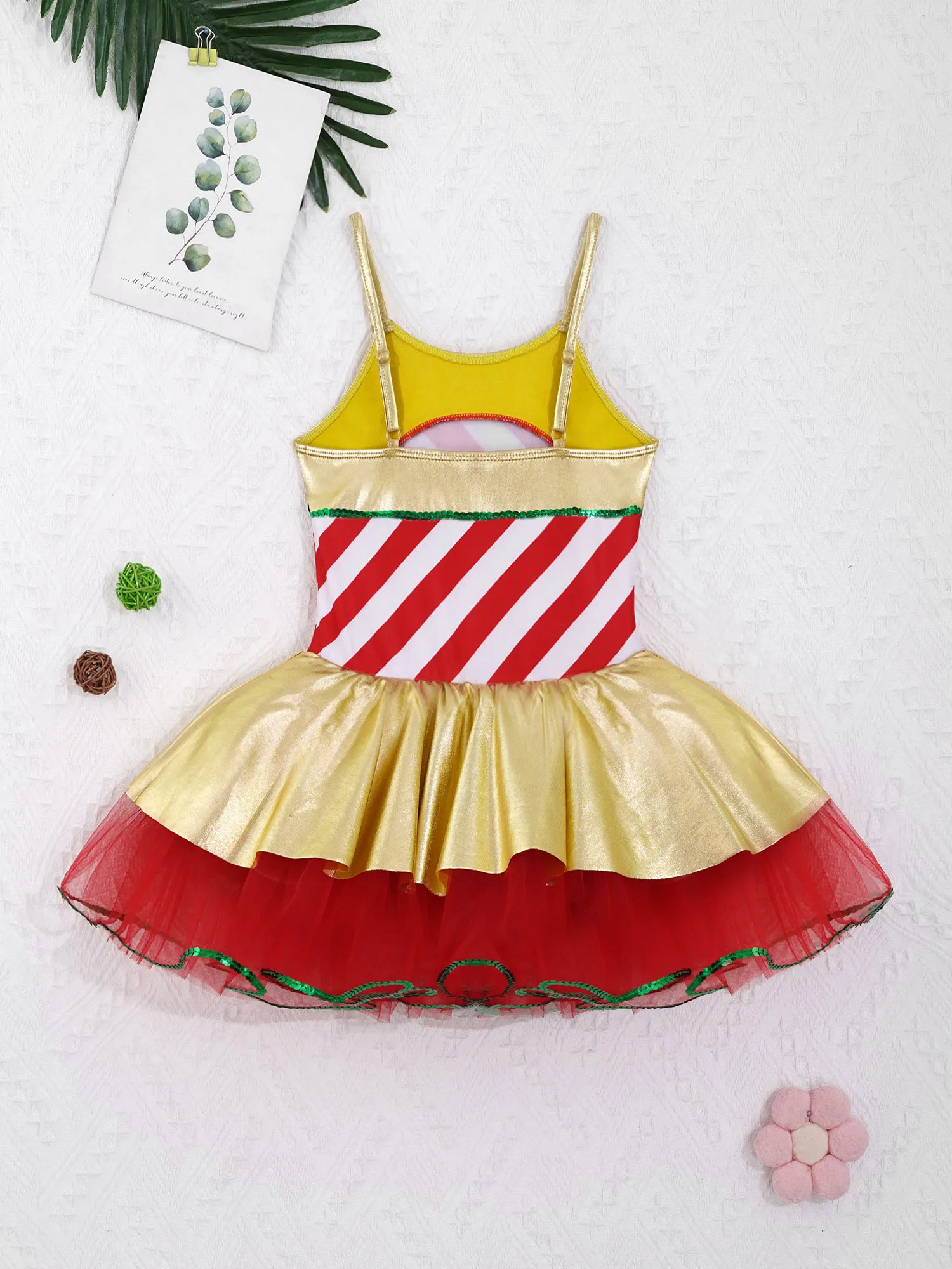 Детский Рождественский костюм без рукавов, блестящая полосатая танцевальная одежда с блестками, детская балетная пачка для девочек, трико, платье для фигурного катания на коньках