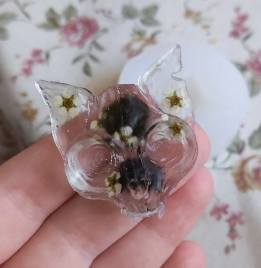 Формочка хорошая, залилось все хорошо, но она матовая, на что следует обратить внимание Меньше, чем за неделю была уже на кассе пятерочки. Извлекать смолу легко, ничего не прилипло. Ушки тонкие, так что край выходит довольно острым