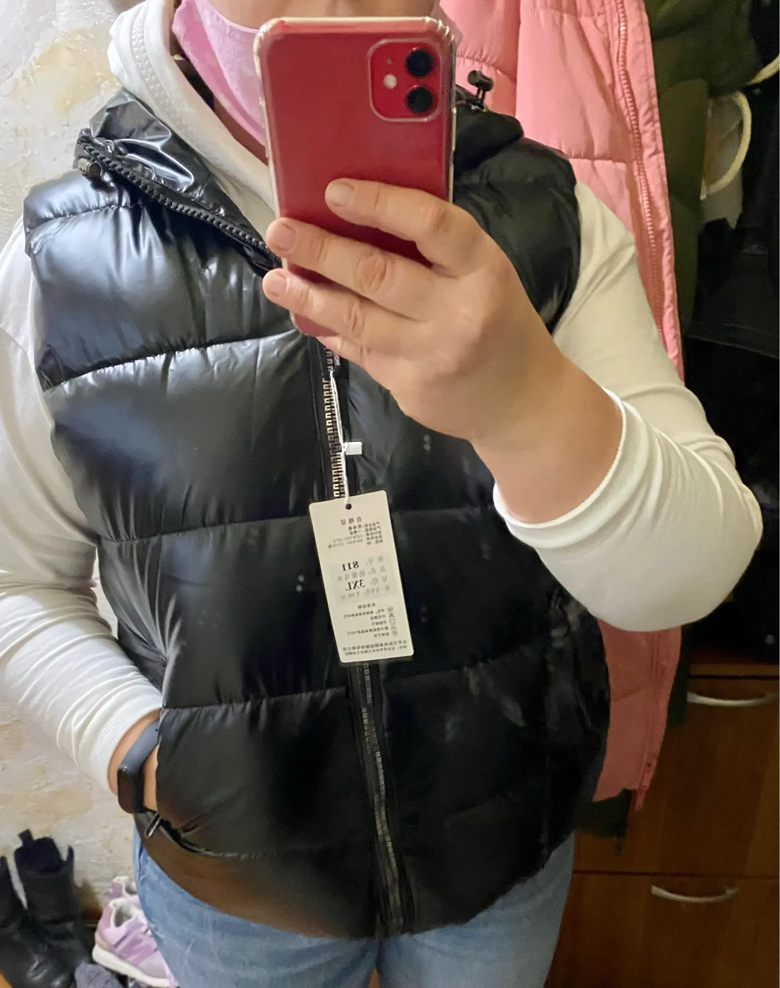 Жилетка хорошая, стильная. Красивый красный цвет. Качество понравилось, тёплая. На объём груди 102см 4XL оказалась прилично свободной, думаю на пару размеров меньше село бы лучше. Рисковая упаковка в обычный пакет, можно бы понадёжнее сделать. Доставка месяц до МО. Спасибо!