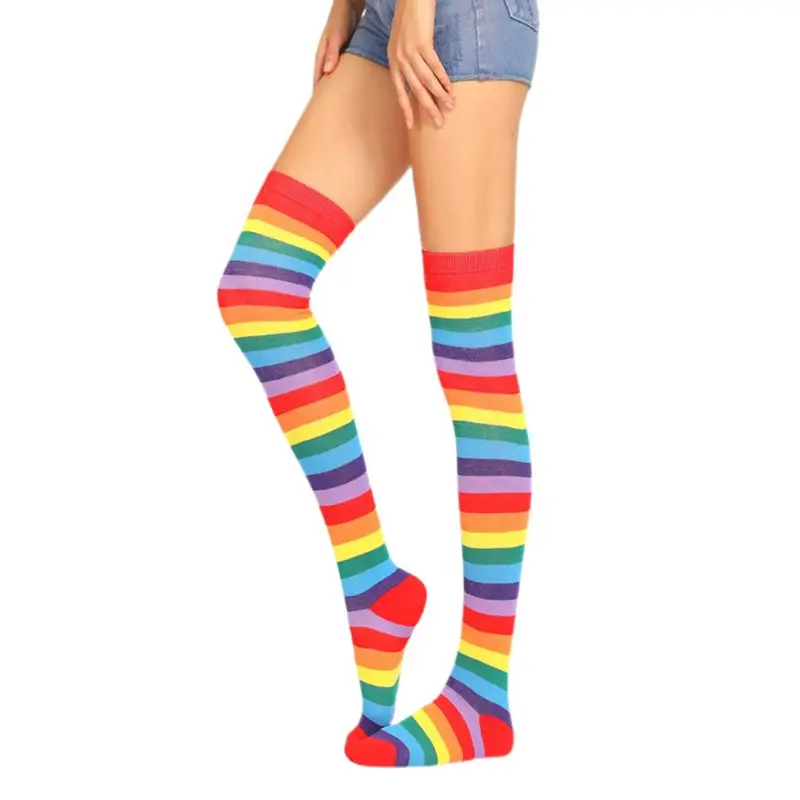 Женские длинные гольфы в радужную разноцветную полоску для девочек; Карнавальный костюм на Хэллоуин; Вязаные эластичные гольфы