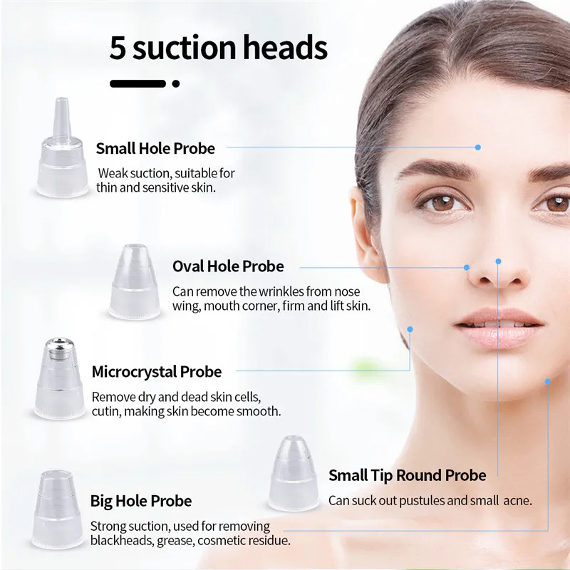 Небольшой зонд отверстия: слабый всасывание, подходит для тонкой и чувствительной кожи