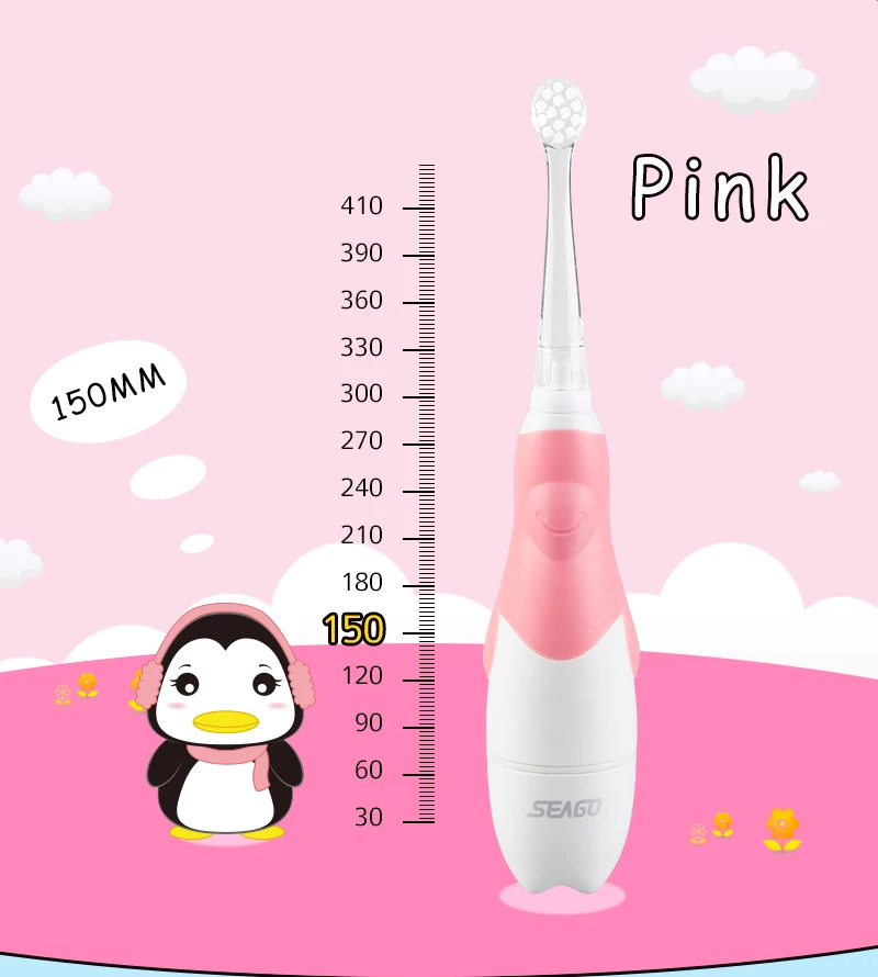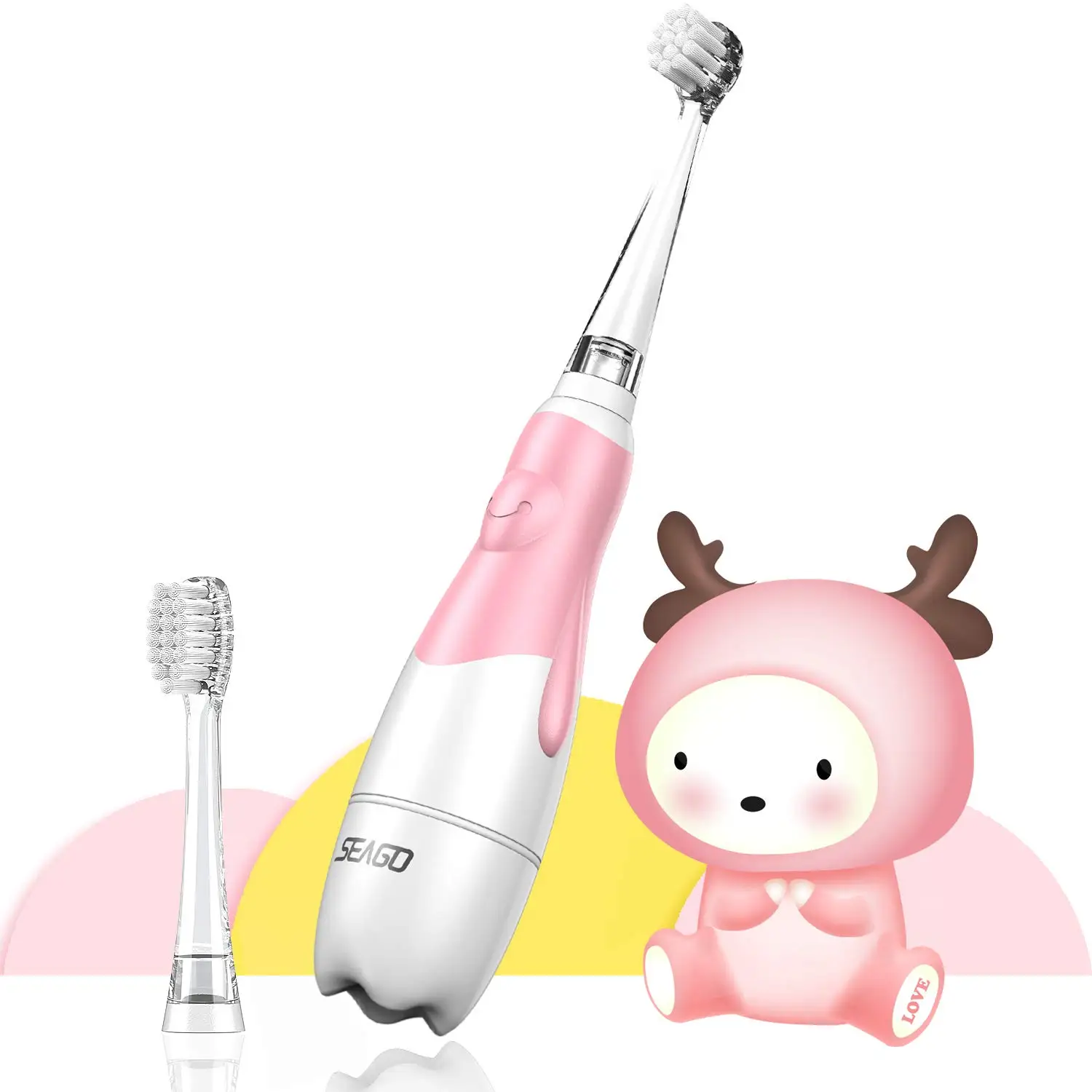 SEAGO Kids электрическая зубная щетка Sonic подходит для детей от 0 до 3 лет, безопасная щетка для зубов, водонепроницаемый белый светодиодный светильник, подарок SG513