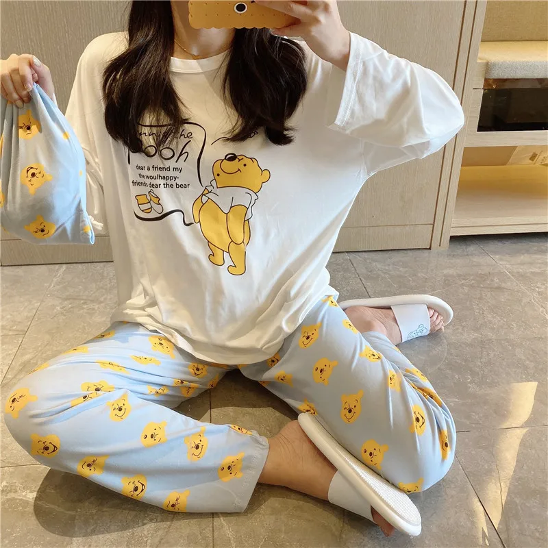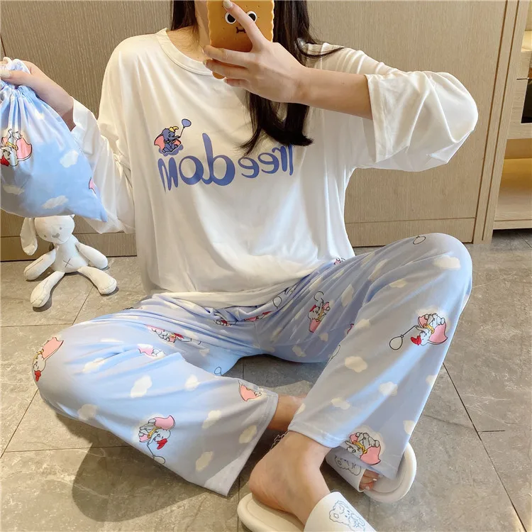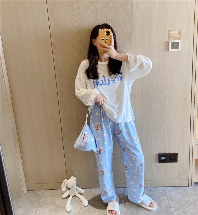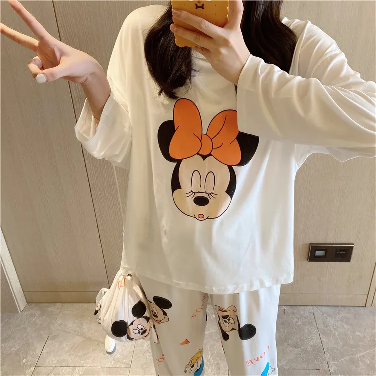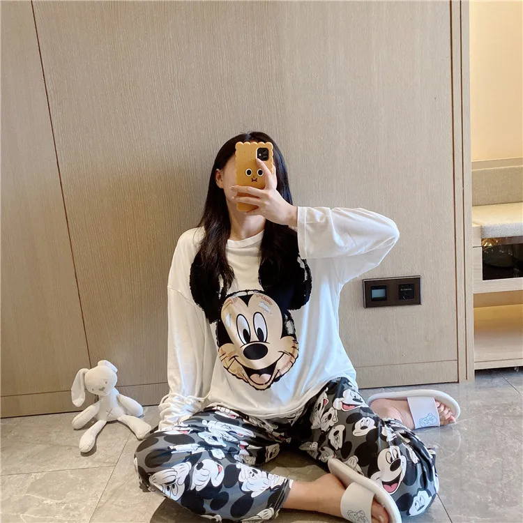 Пижама женская весенне-осенняя с длинным рукавом и принтом маргариток