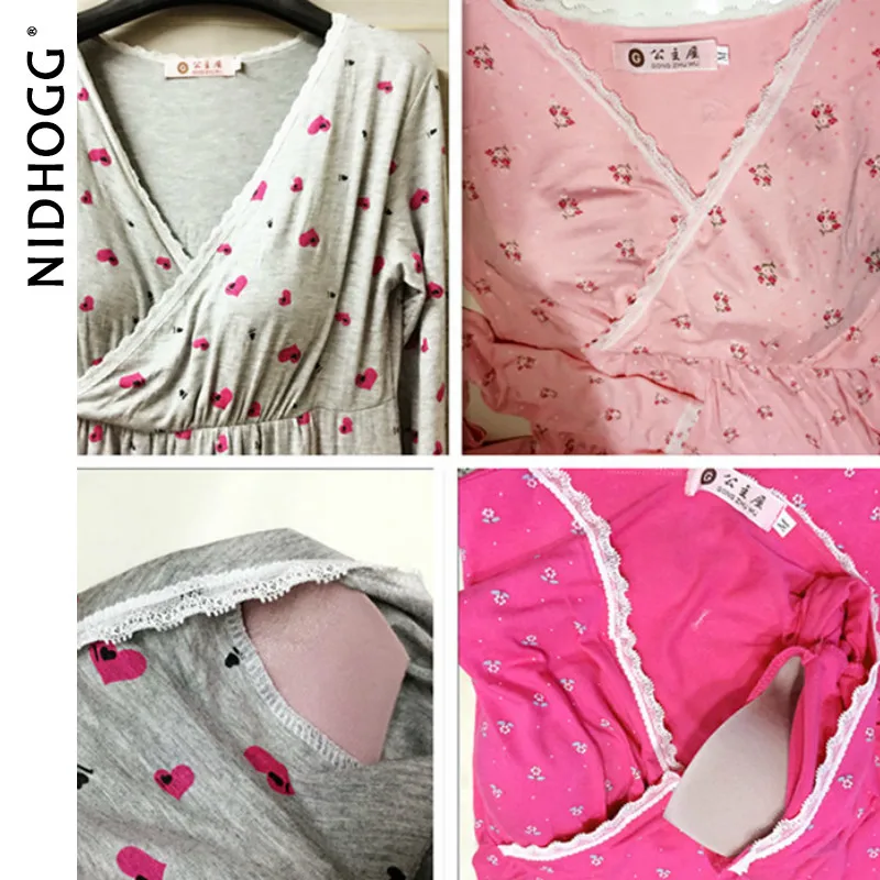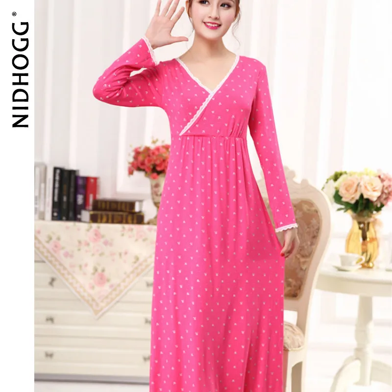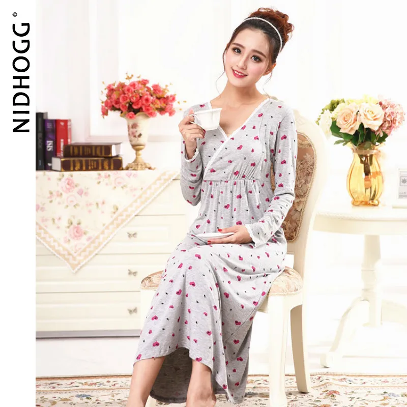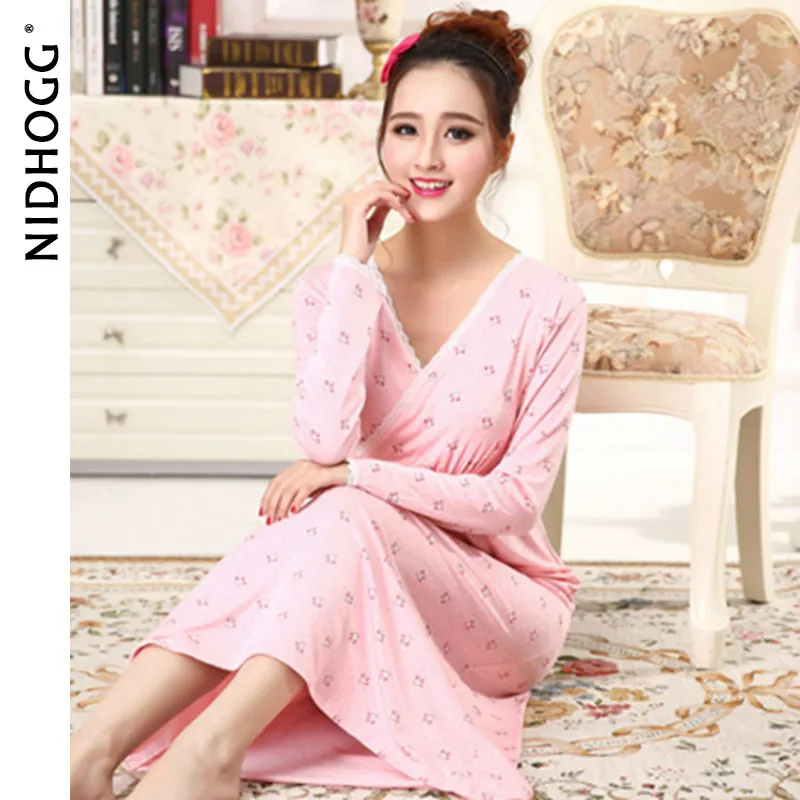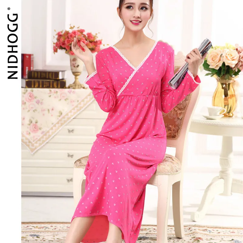 Осеннее мягкое свободное Ночное платье Женская одежда для беременных ночная рубашка с длинными рукавами размера плюс ночная рубашка из модала