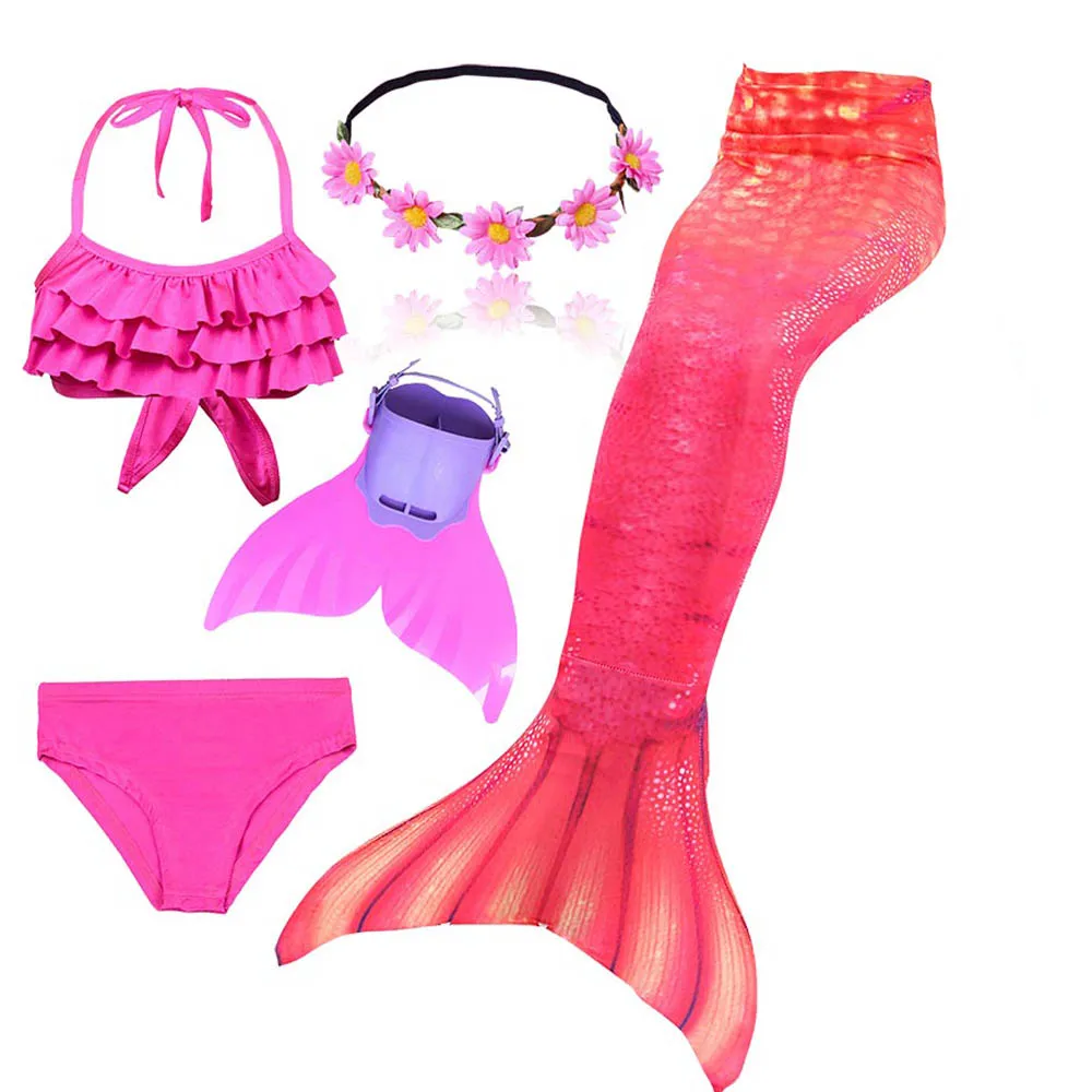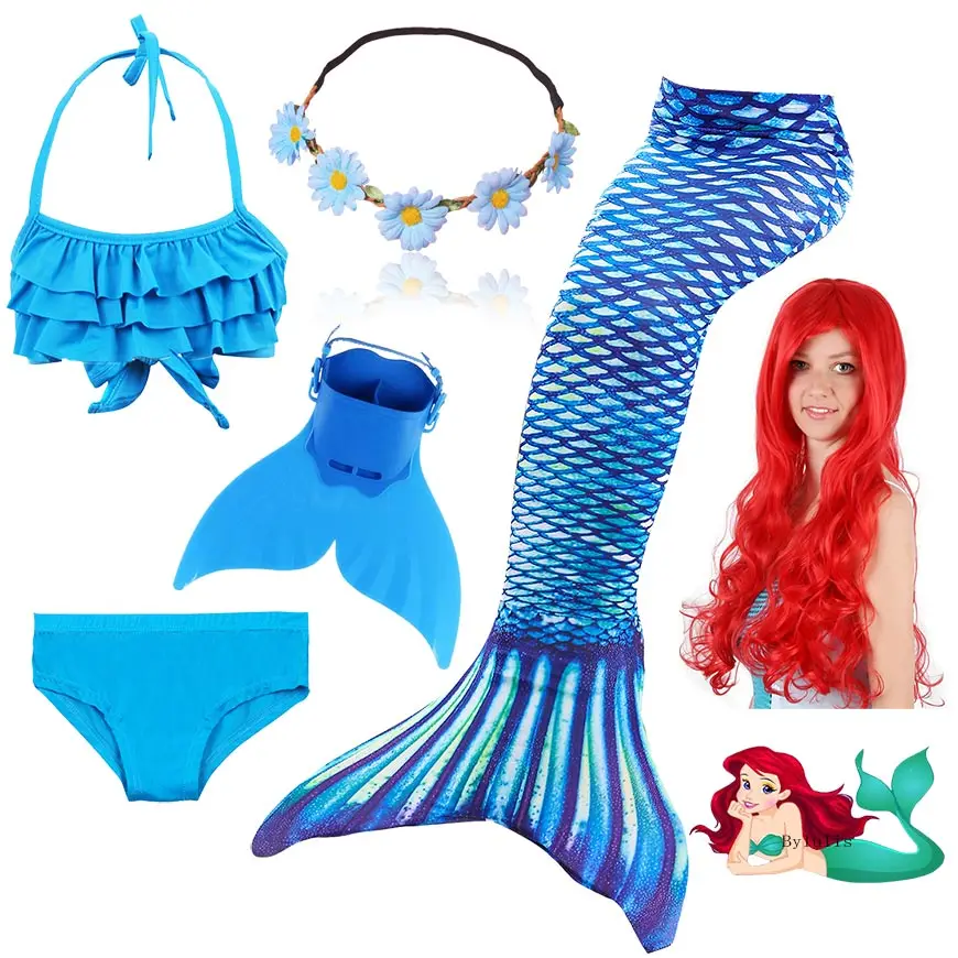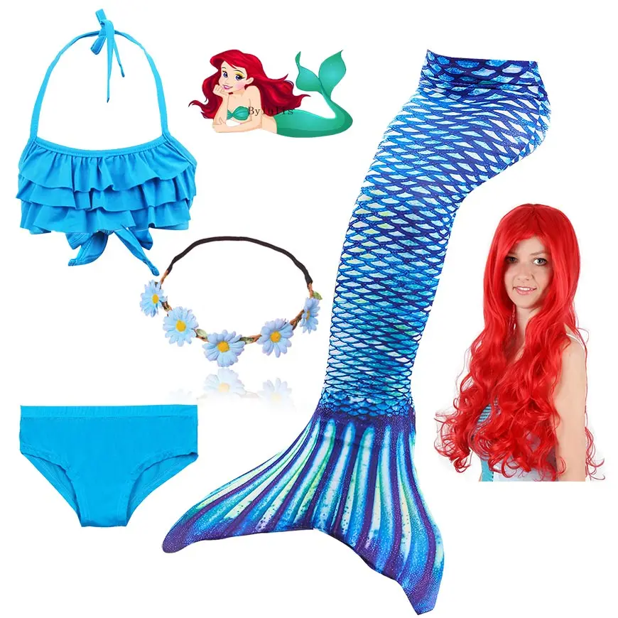 4 шт./компл. девочки хвост русалки для плавания, новый купальник для детей Ариэль хвост русалки Костюм Русалки необычный купальник