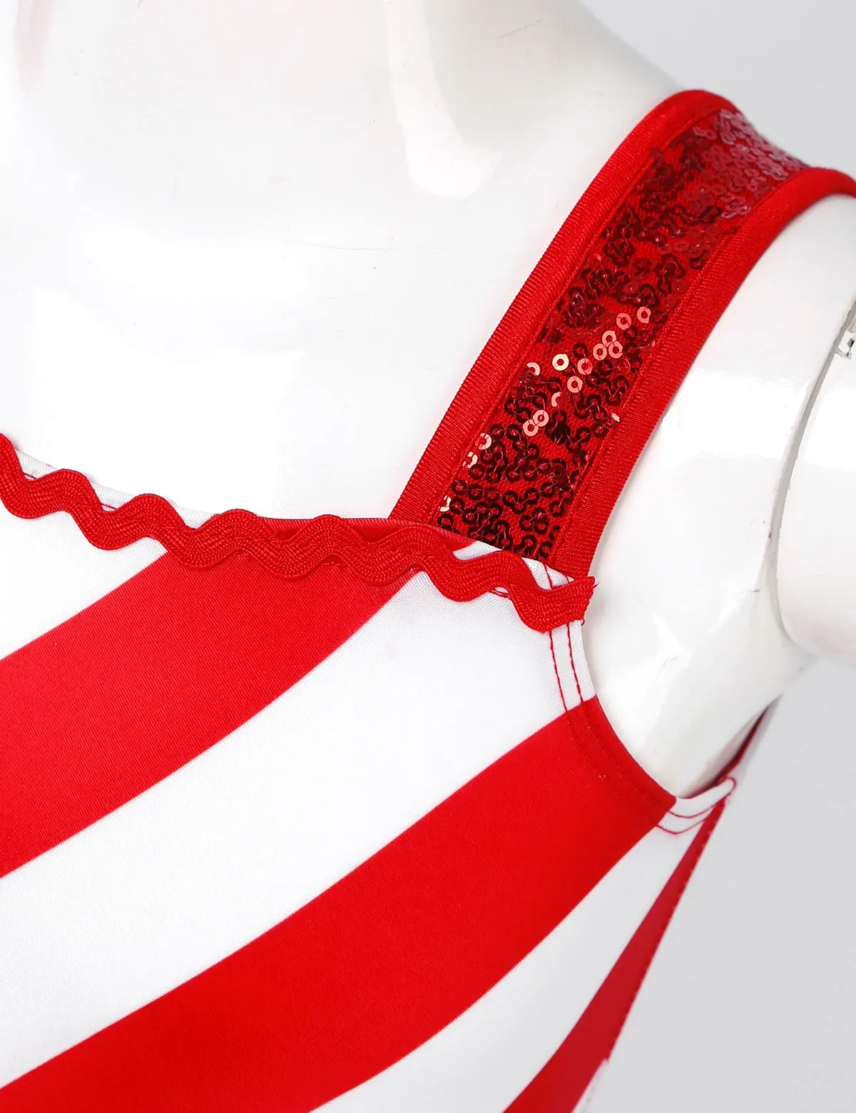 Детские Рождественские танцевальные костюмы для девочек, балерина с блестками, платье в полоску для фигурок, катания на коньках, летучая мышь, трико, детское платье для косплея