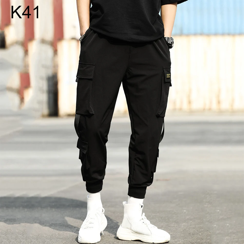Брюки-карго мужские повседневные, дышащие штаны на завязке с карманами на щиколотке, повседневные штаны