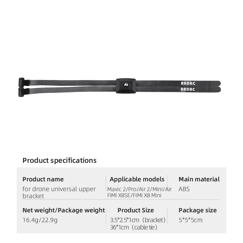Характеристика:1. Изготовлен из высококачественных материалов, быстрый и прочный, износостойкий;2. Оснащен винтом 1/4, который может быть подключен к OSMO ACTION, панорамной камере Insta360, камере GOPRO, заполняющему светильник и т. д. (некоторые спортивные камеры должны подготовить адаптер отдельно);3. Длина кабеля составляет около 35 см, что подходит для большинства дронов. Длина кабеля может быть обрезана в соответствии с размером фюзеляжа во время установки. Легко установить и удобно.4. Резиновая противоскользящая накладка, подходит для корпуса, противоскользящая и противоскользящая. Также оснащен двусторонней лентой для использования.Описание:Материал: пластик,Применимые модели: для Mavic 3 /Mavic 2 / Air 2 / Pro / Mini / Air / FIMI X8SE 2020 / Hubsan Zino/Mini SEВес нетто: 13 г,Продукт Размеры: 3,4*2,2*1 см (кронштейн), 35 см (кабельная стяжка)Упаковочный лист:Кабельная Стяжка * 2Верхний кронштейн * 1Двусторонний клей * 1Примечание: в комплект не входят дроны, спортивные камеры, панорамные камеры, карданные камеры Osmo Pocket, заполняющие огни и другие аксессуары.