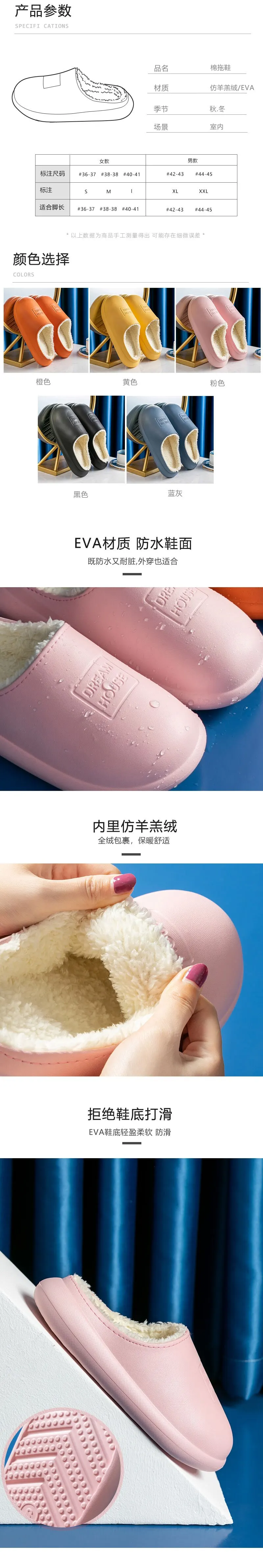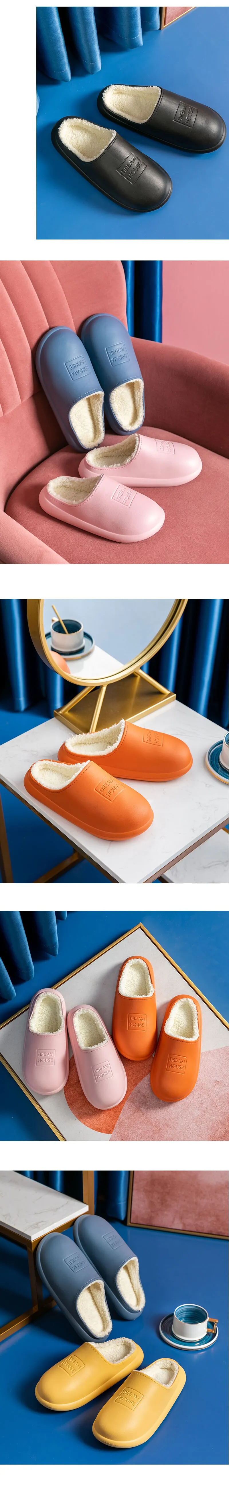 Водонепроницаемые зимние тапочки для женщин и мужчин, домашние тапо...