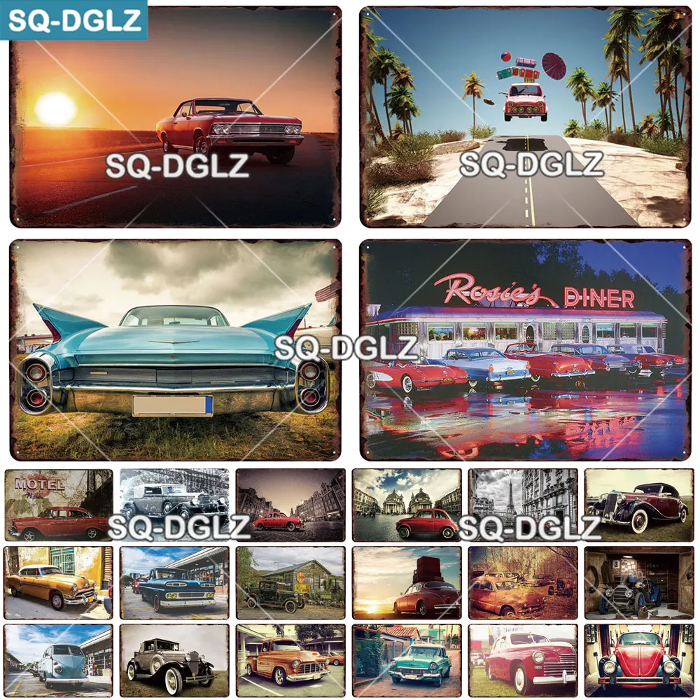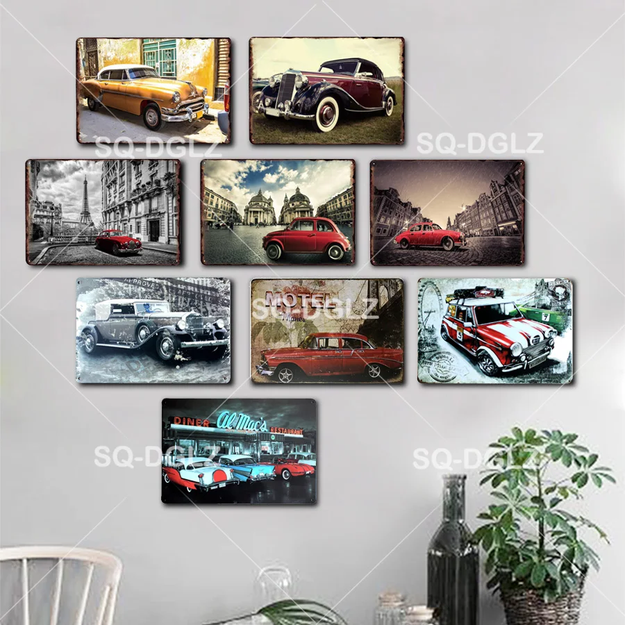 Искусственная винтажная ретро-модель автомобиля, металлический знак...