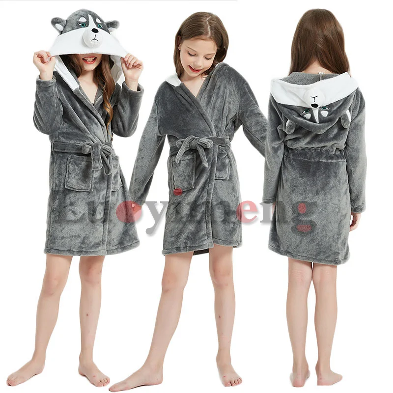 Зимние халаты для девочек, фланелевые банные халаты с единорогом, н...