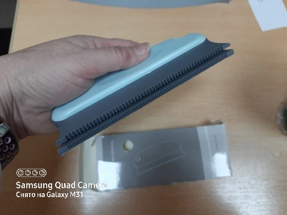 Товар соответствует описанию. С котов хорошо вычесывает шерсть. С тканей тоже хорошо. С ковра с ворсом чуть хуже. Цвет совпадает, в руке держать удобно.