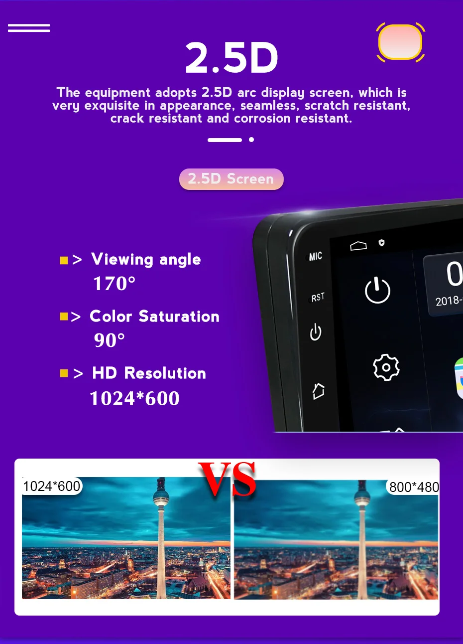 Разрешение: HD 1024X600 пикселей емкостный экран