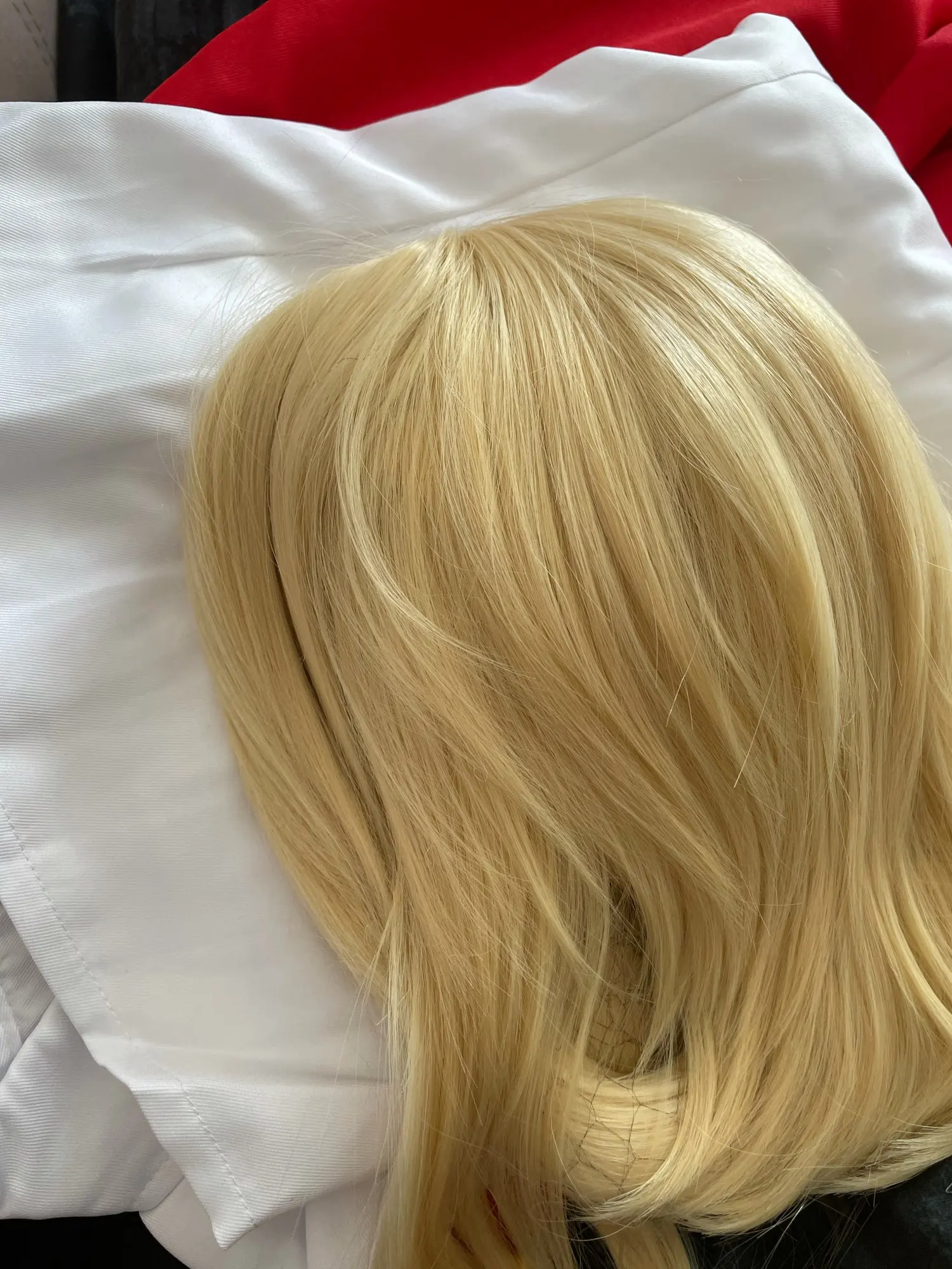 Форма не особо понравилась. Заказала L на свой рост 172, размер одежды 42. В плечах село хорошо, но пиджак висит конкретно, никакой формы, придётся ушивать. Ну и материал дешевенький. Юбка в талии оказалась норм, что странно. Обычно на свой рост я всегда заказываю юбки на два размера больше, чтобы они не были короткими, а потом несу ушивать в талии. Здесь же в талии она села хорошо, но она супер короткая)))) а вот парик сильно порадовал! Цвет шикарный! я боялась, что цвет будет слишком жёлтым как у дешёвых париков, но нет, мне очень понравился. Красивый золотистый блонд.