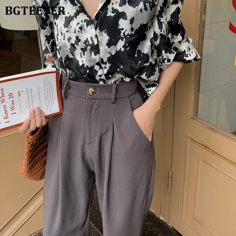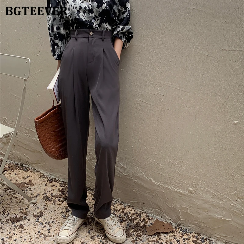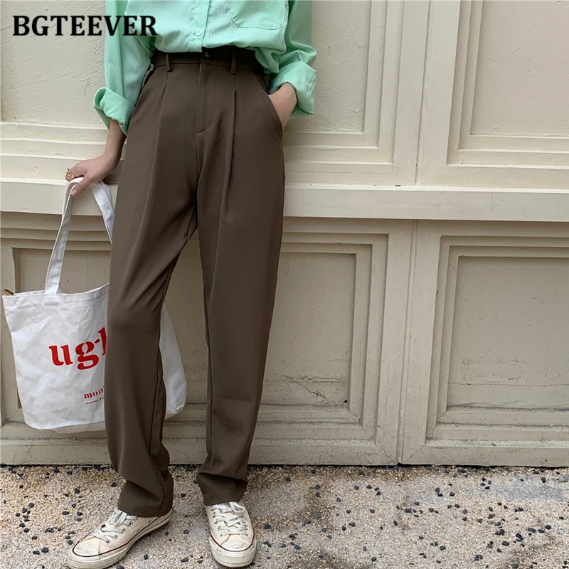 Брюки BGTEEVER женские, с высокой талией, с карманами, свободные, повседневные, прямые, Осенние, 2020
