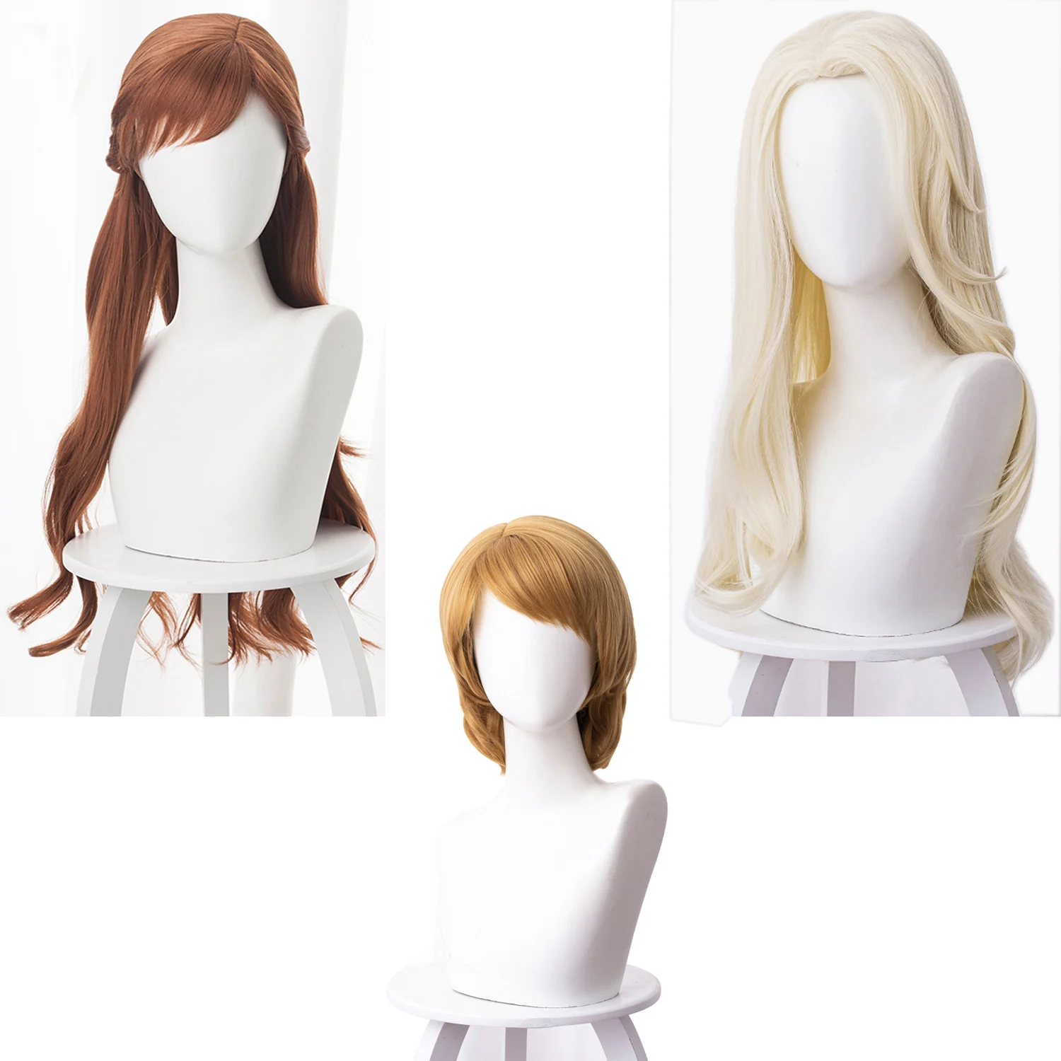 Парик для косплея принцессы Эльзы, Анны, кристоффа, Снежной королевы, термостойкие волосы из синтетики, для косплея с шапочкой