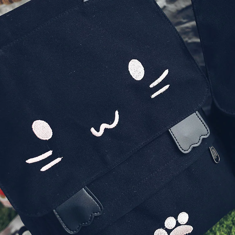 Холщовый Рюкзак с мультяшной вышивкой кота для девочек-подростков, школьные ранцы с милым принтом, X69H, 2020