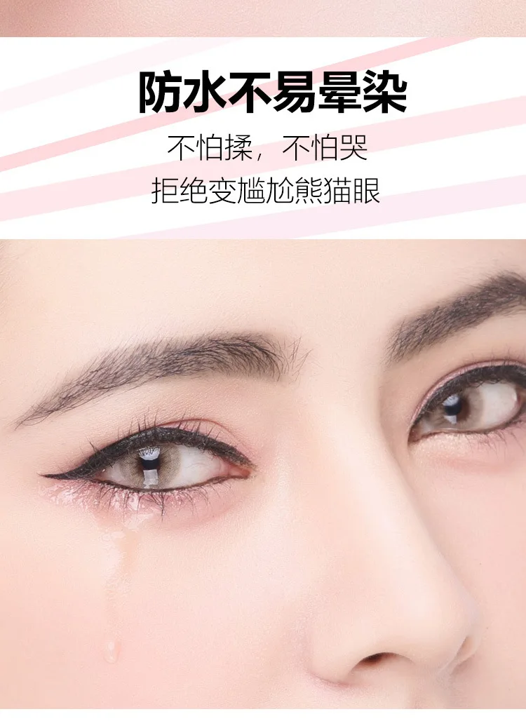 Сохраняет прочность и макияж не легко удаляется. Гладкий и сухой, быстро увеличивает два глаза, идеальный макияж для глаз на целый день, водонепроницаемый тест на грубое нанесение подводки для глаз является водонепроницаемым и не может расцвести.