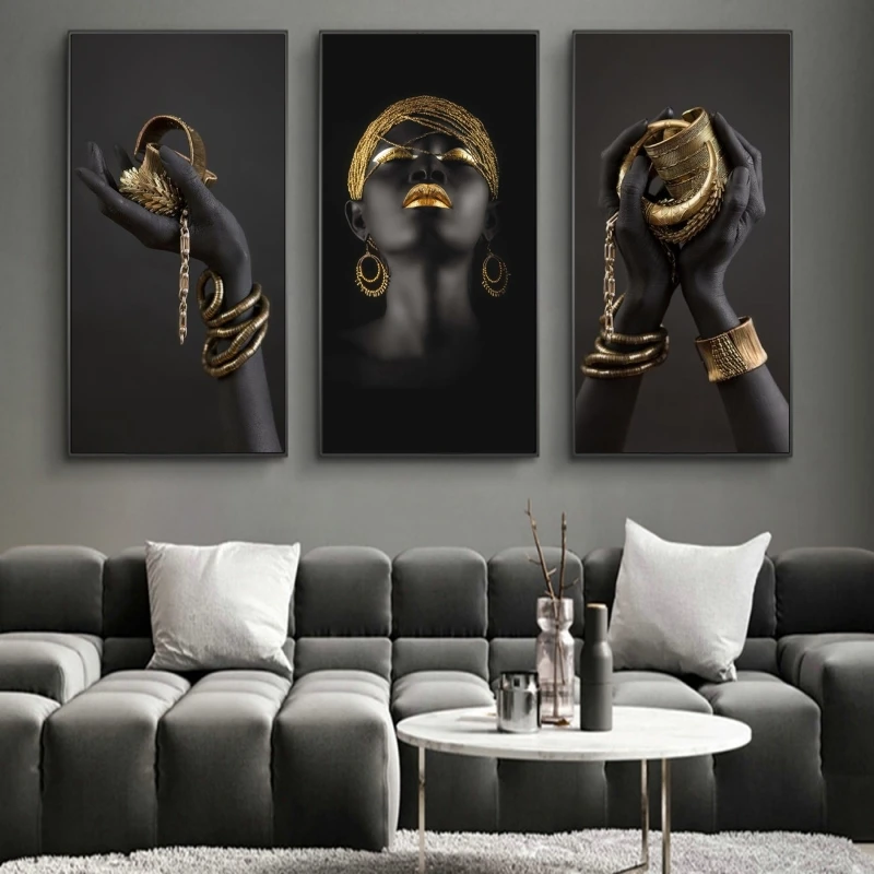 Сексуальная африканская Женская Золотая девушка лицо холст настенны...
