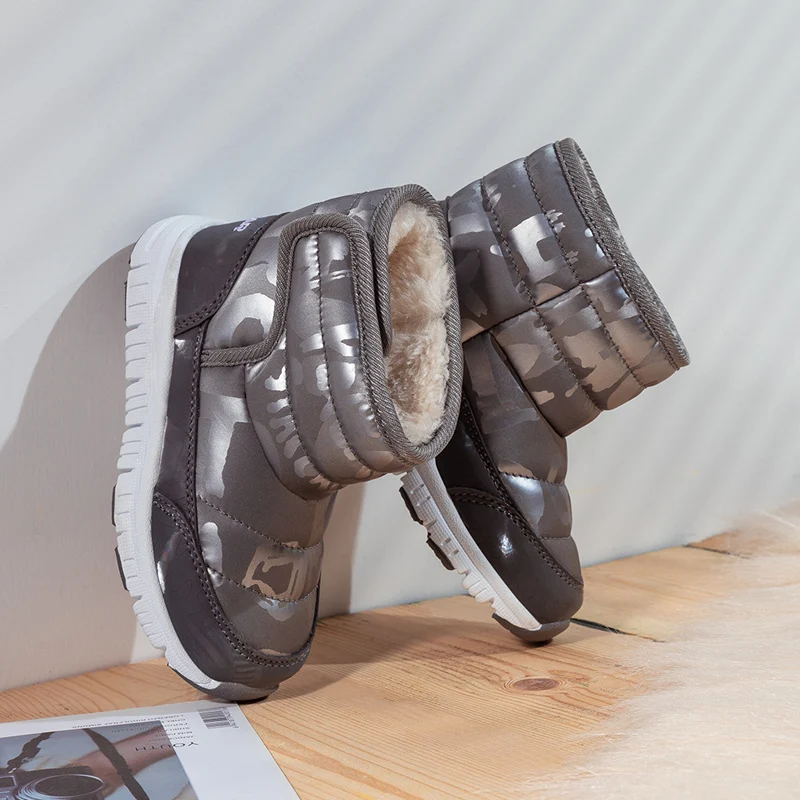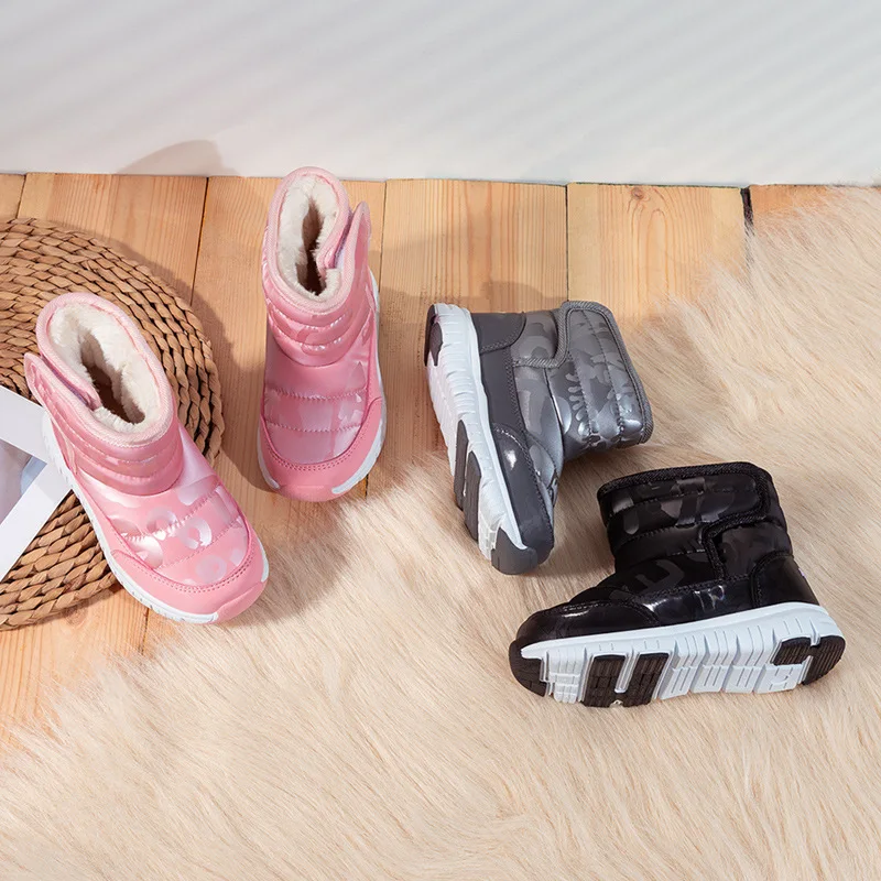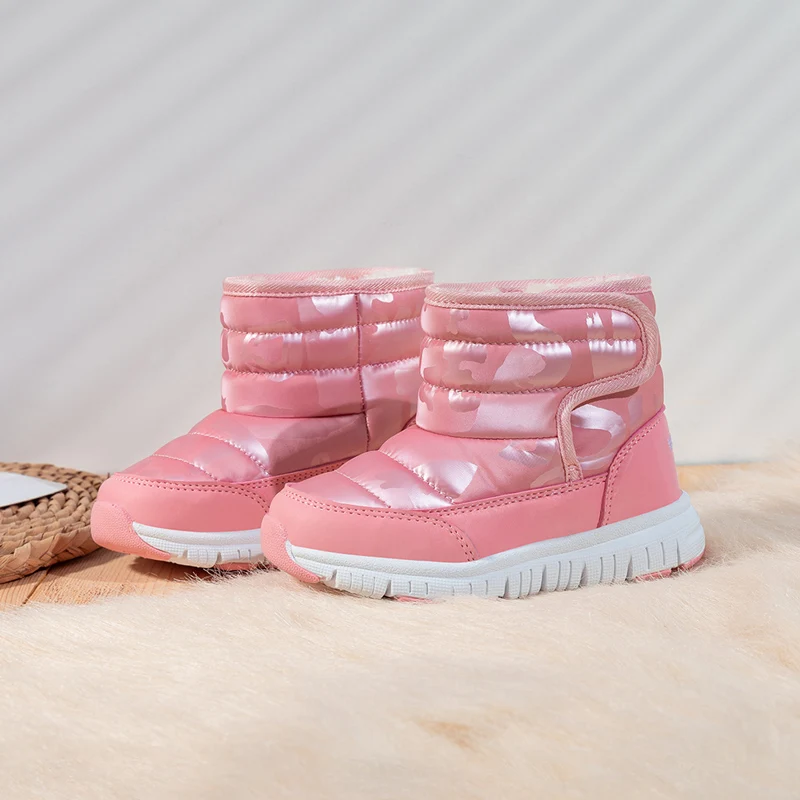 Детские ботинки ULKNN, зимняя теплая обувь на хлопковой подкладке, повседневная, плотная, розовая, 2021